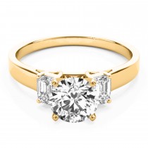 This classic 0.30ct ring setting features a 14k yellow gold band, bedecked with 2 emerald cut diamonds. The precious stones flank either side of the prong main stone setting, awaiting the diamond or precious gemstone of your choice. The diamonds are of G-H color, SI1-SI2 clarity, and are set in prong settings throughout the ring.