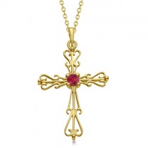 Vintage Inspired Ruby Cross Pendant Necklace 14K Yellow Gold (0.23tct)
