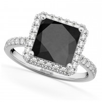 Princess Cut Halo Black Onyx & Diamond Engagement Ring 14K White Gold 3.47ct