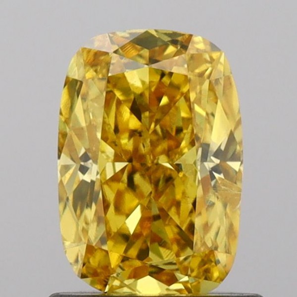 Lab Created 0.80 Carat Fancy Vivid Yellow-SI2 Cushion Cut Diamond