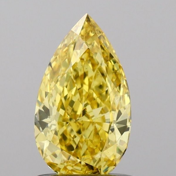 Lab Created 0.92 Carat Fancy Vivid Yellow-VS2 Pear Shaped Diamond