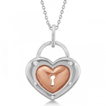 Diamond Heart Lock Necklace Rose Gold over Sterling Silver (0.05ct)