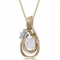 Oval White Topaz & Diamond Teardrop Pendant Necklace 14k Yellow Gold