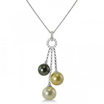 Multicolored Pearl & Diamond Pendant Necklace 14K White Gold 8-11mm