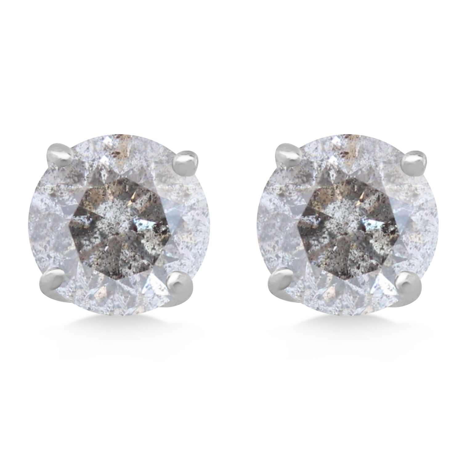 0.75ct. 4-Prong Basket Salt & Pepper Diamond Stud Earrings 14kt White Gold