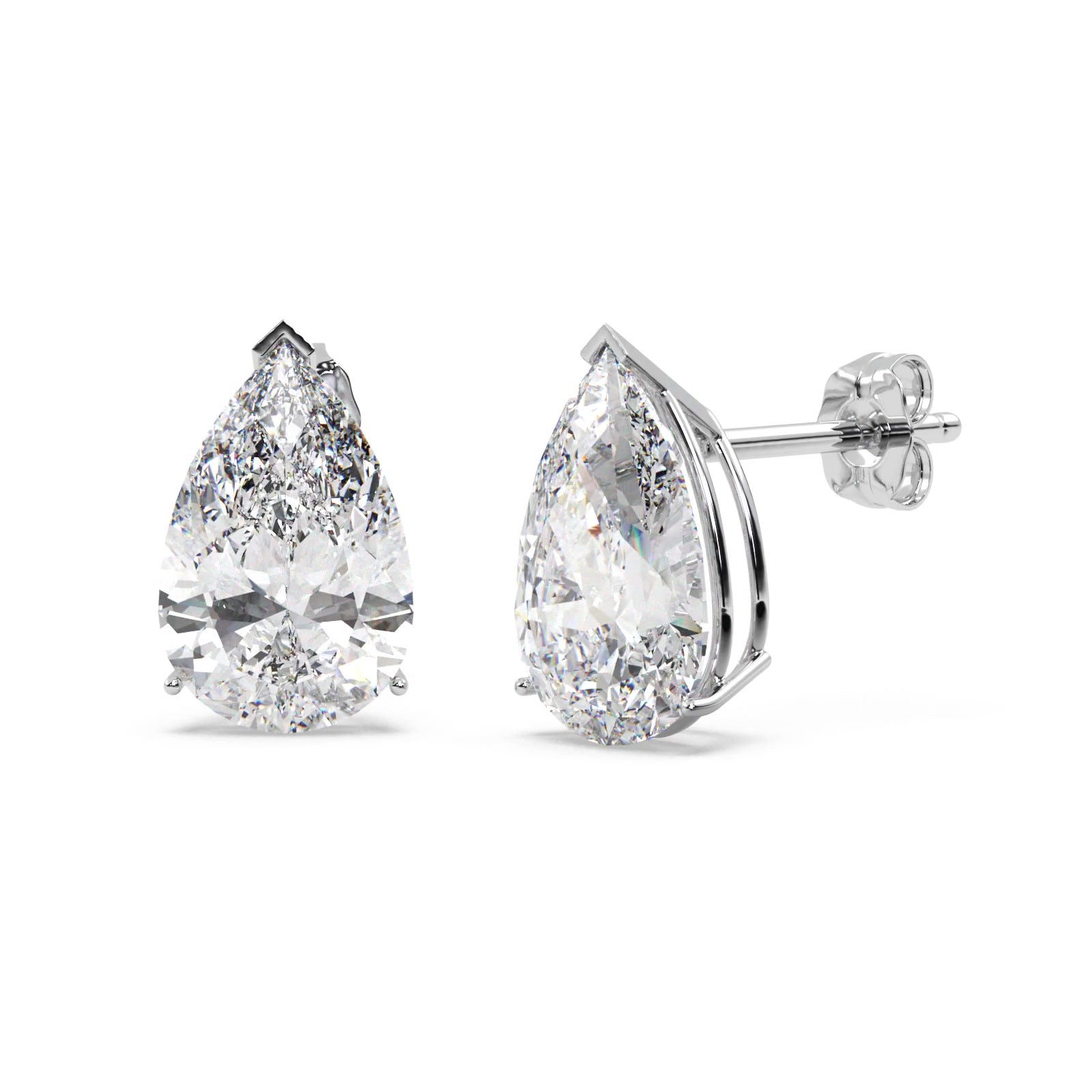 These designer pear diamond stud earrings are set in 14k white gold and are formed by a prong setting.
