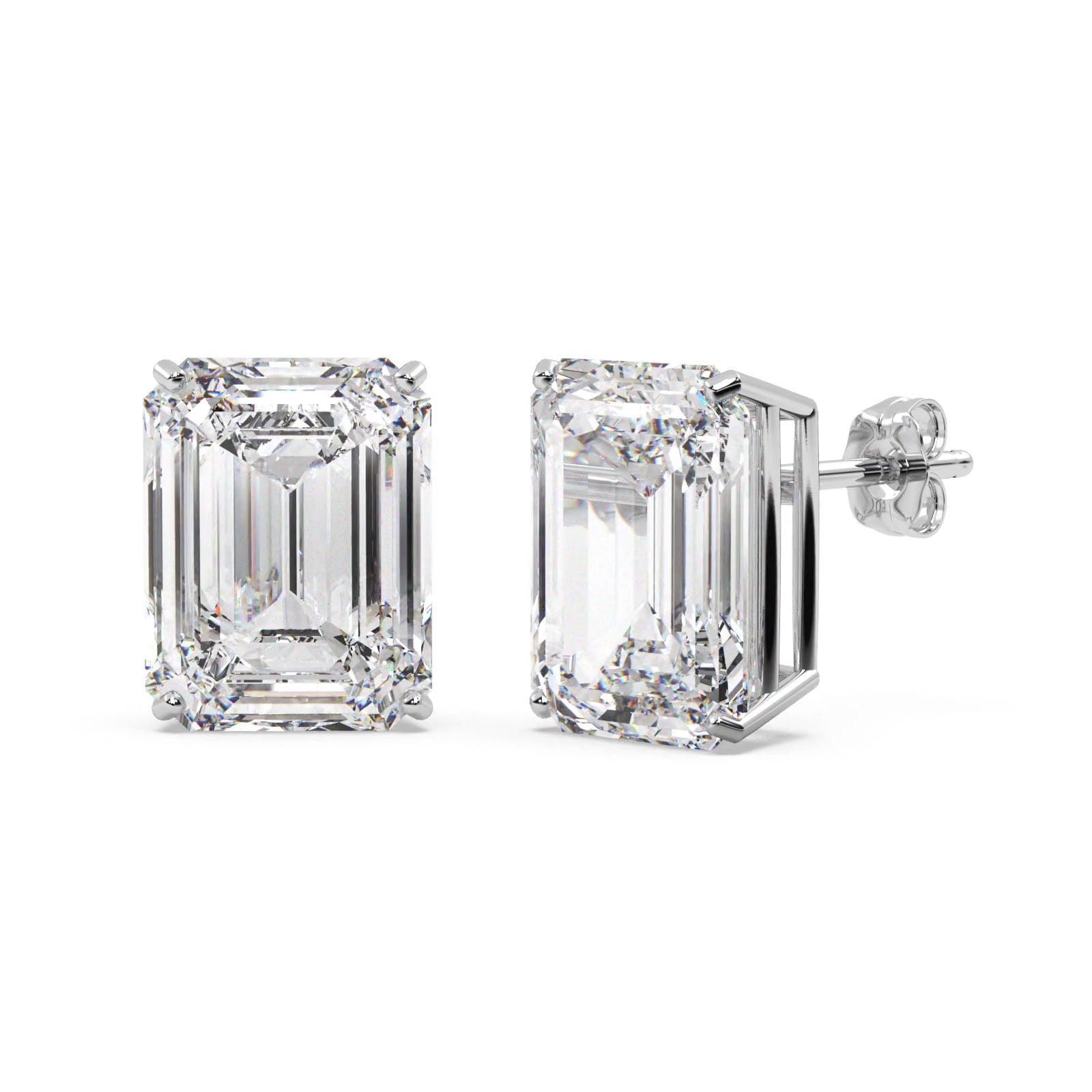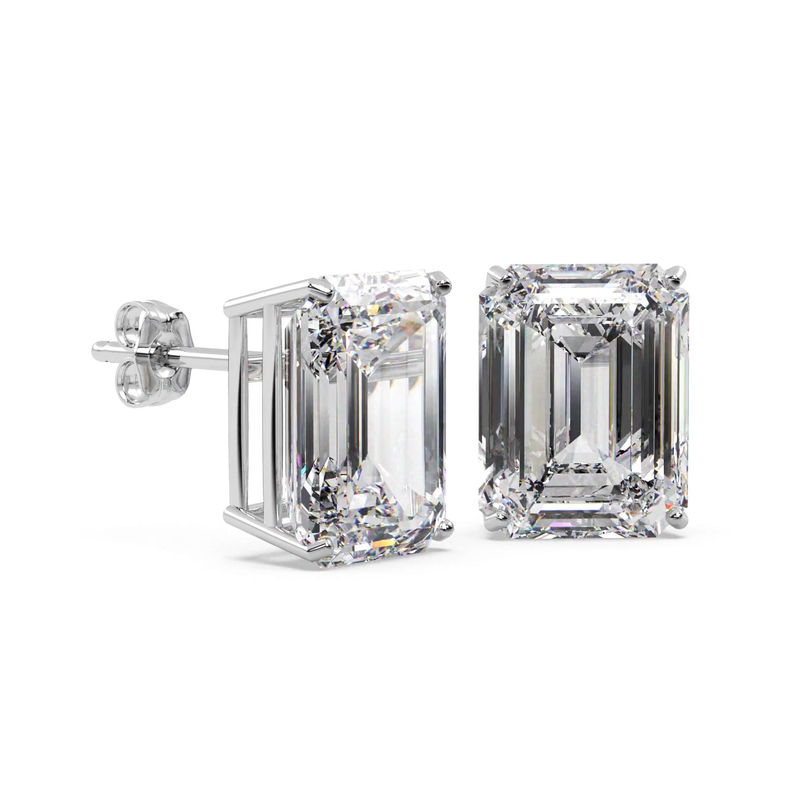 2.00ct Emerald-Cut Moissanite Stud Earrings Platinum (F-G, VVS1)