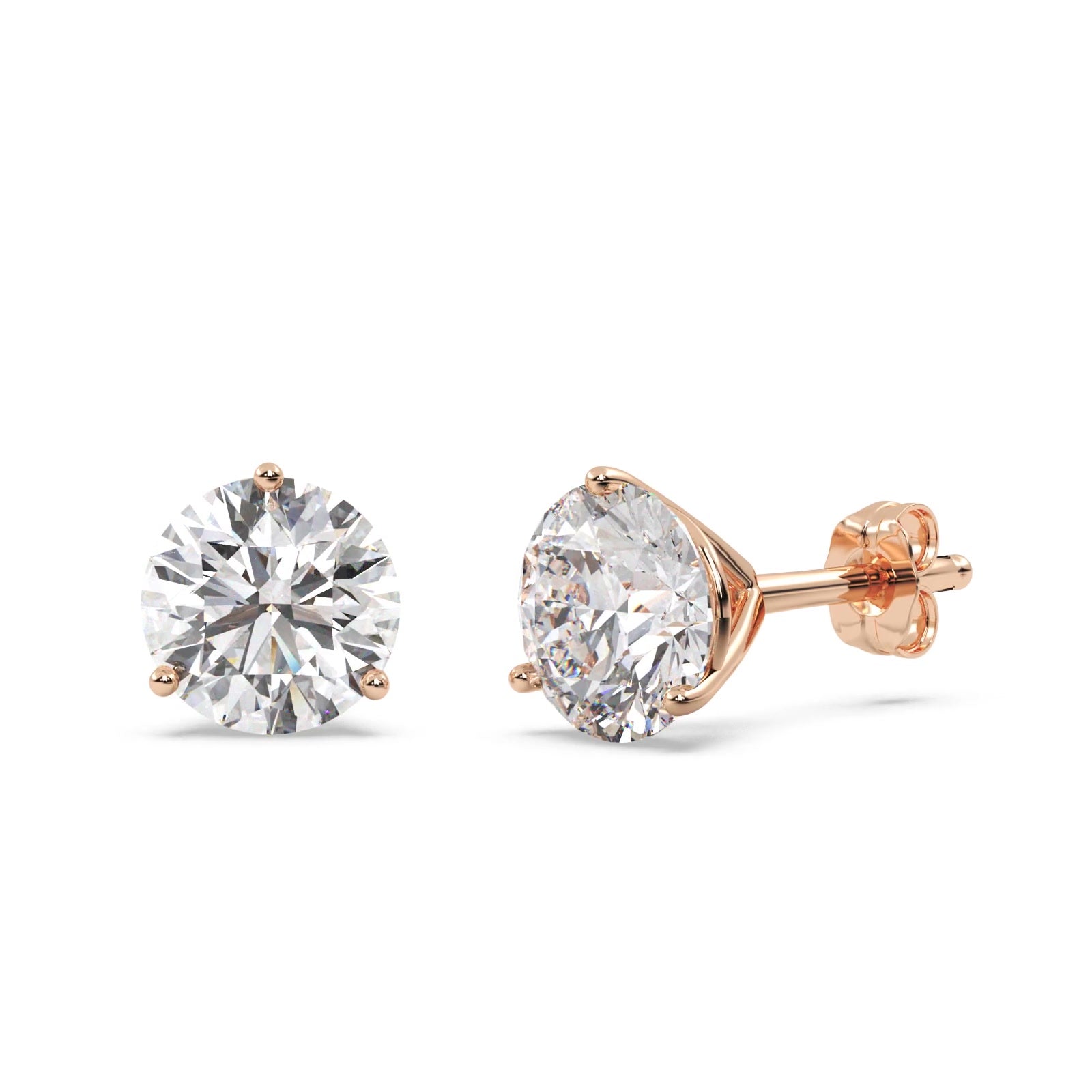 3.00ct. 3-Prong Martini Moissanite Stud Earrings 14kt Rose Gold (F-G,