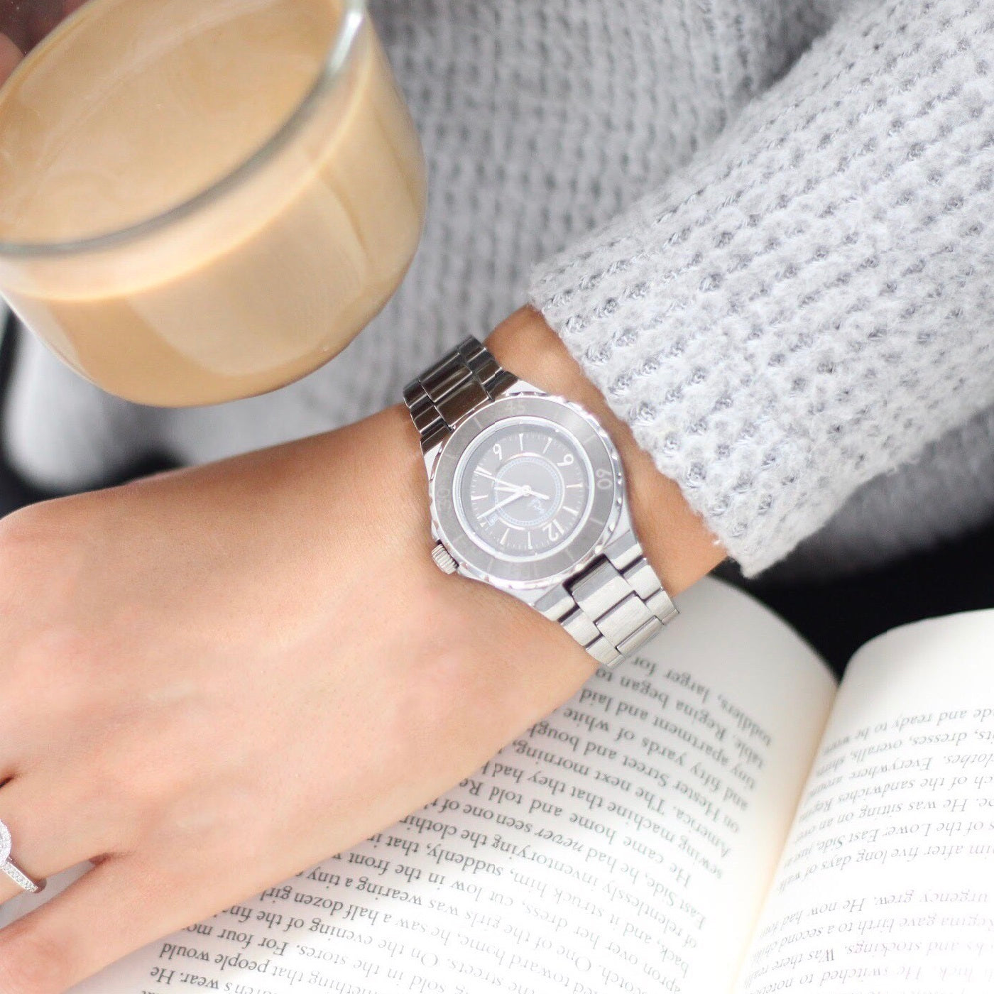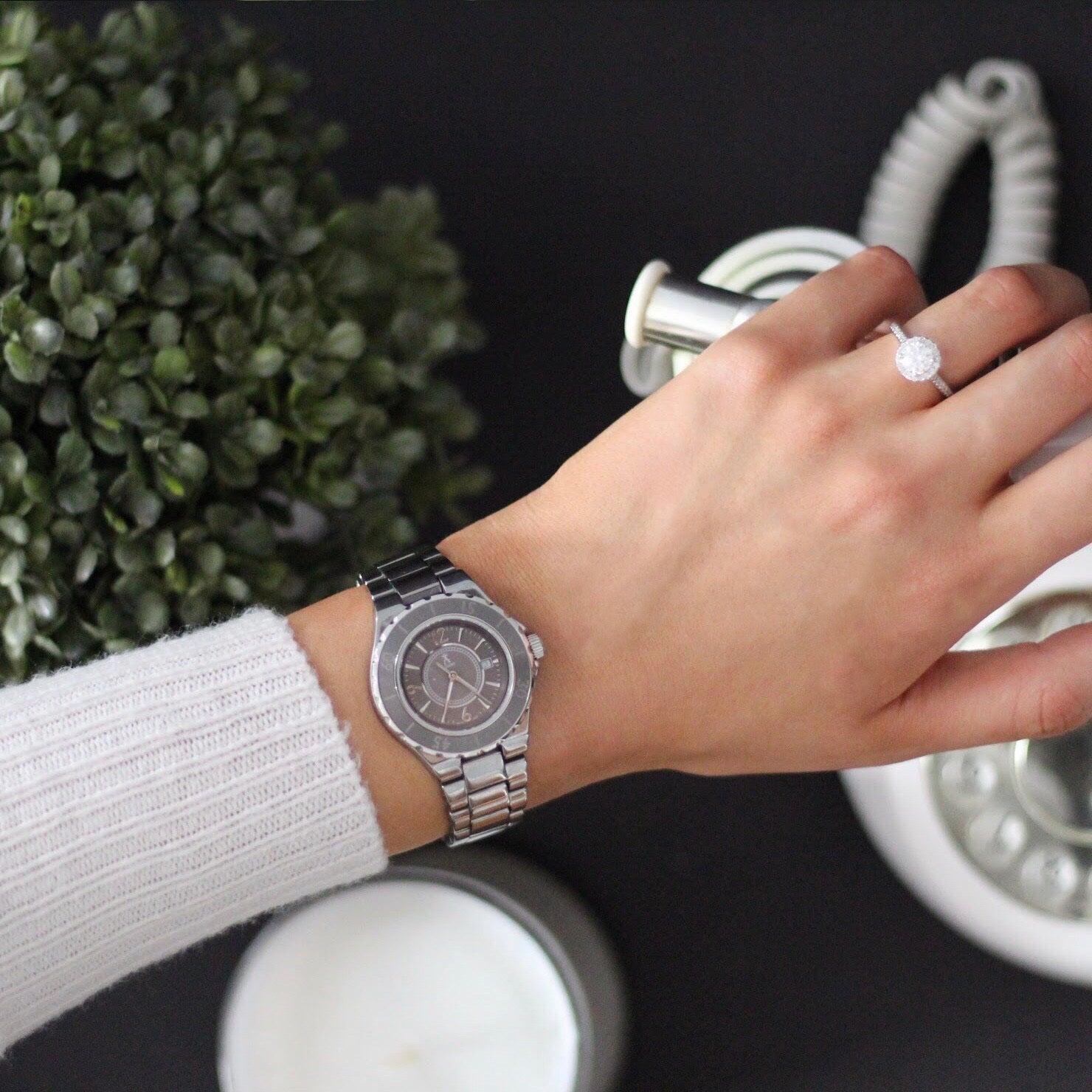This beautiful fashion watch from Allurez has a unique 34mm high-tech ceramic case & bracelet...