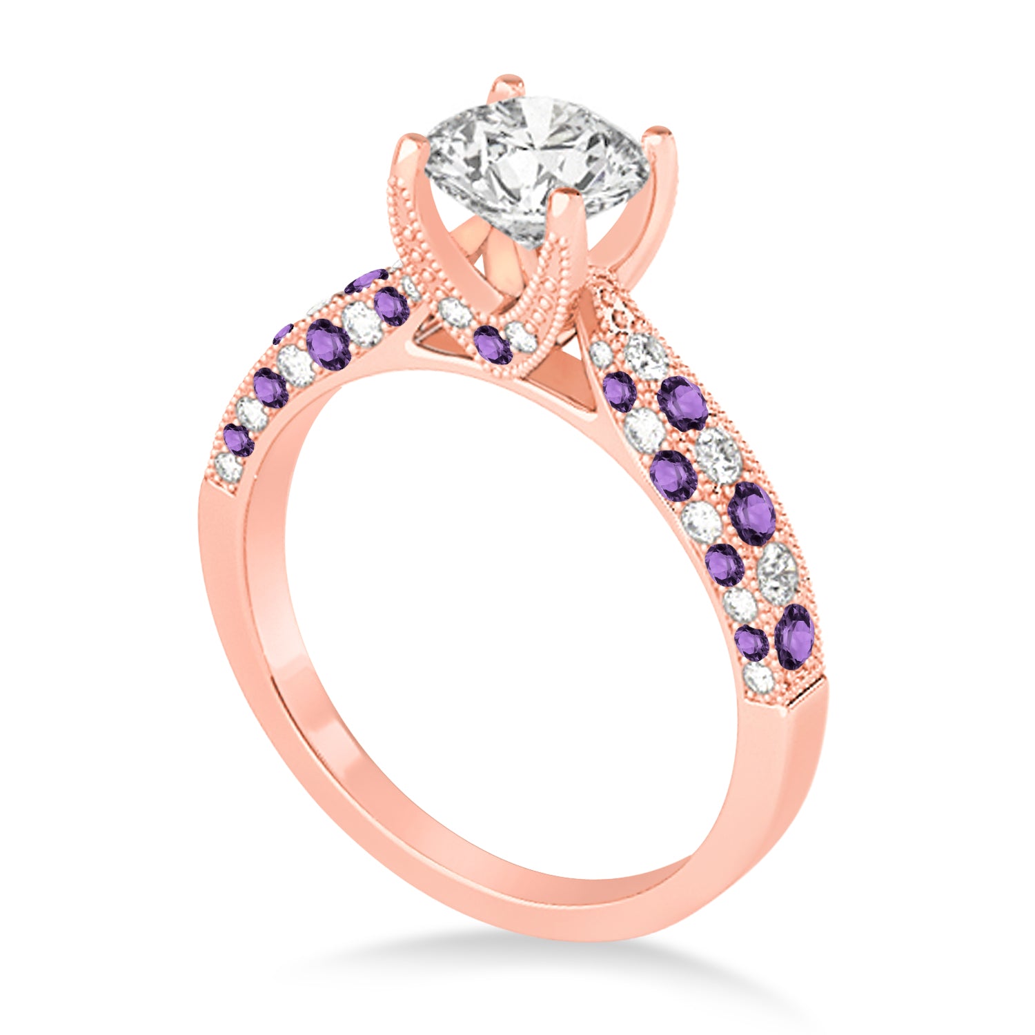 Alternating Diamond & Amethyst Engravable Engagement Ring in 18k Rose