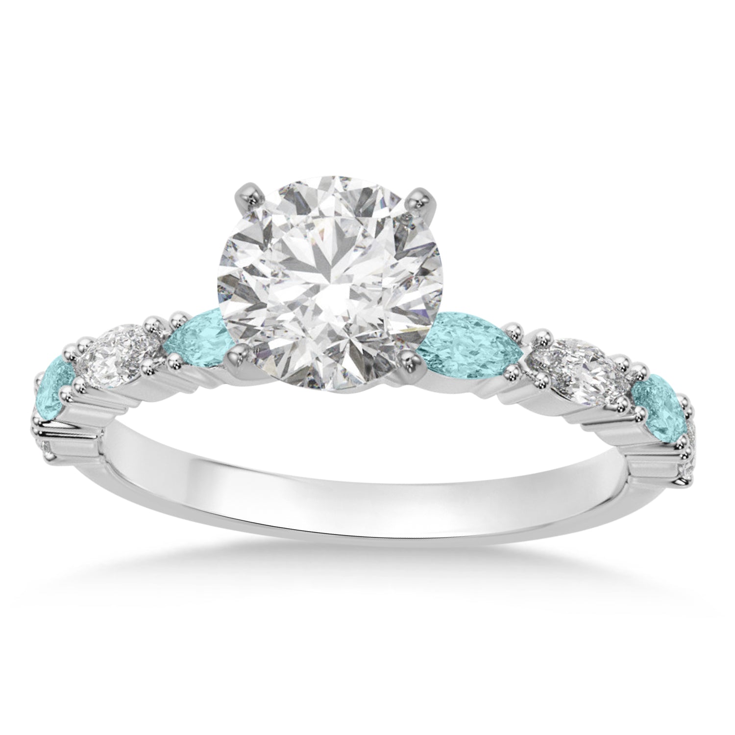 Alternating Diamond & Aquamarine Marquise Engagement Ring 14k White Go