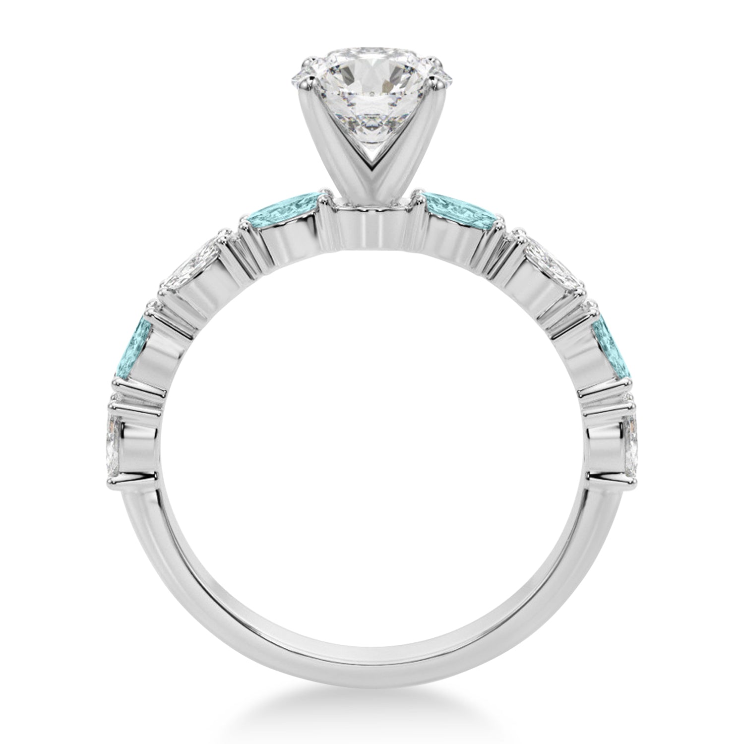 Alternating Diamond & Aquamarine Marquise Engagement Ring 14k White Gold (0.63ct)