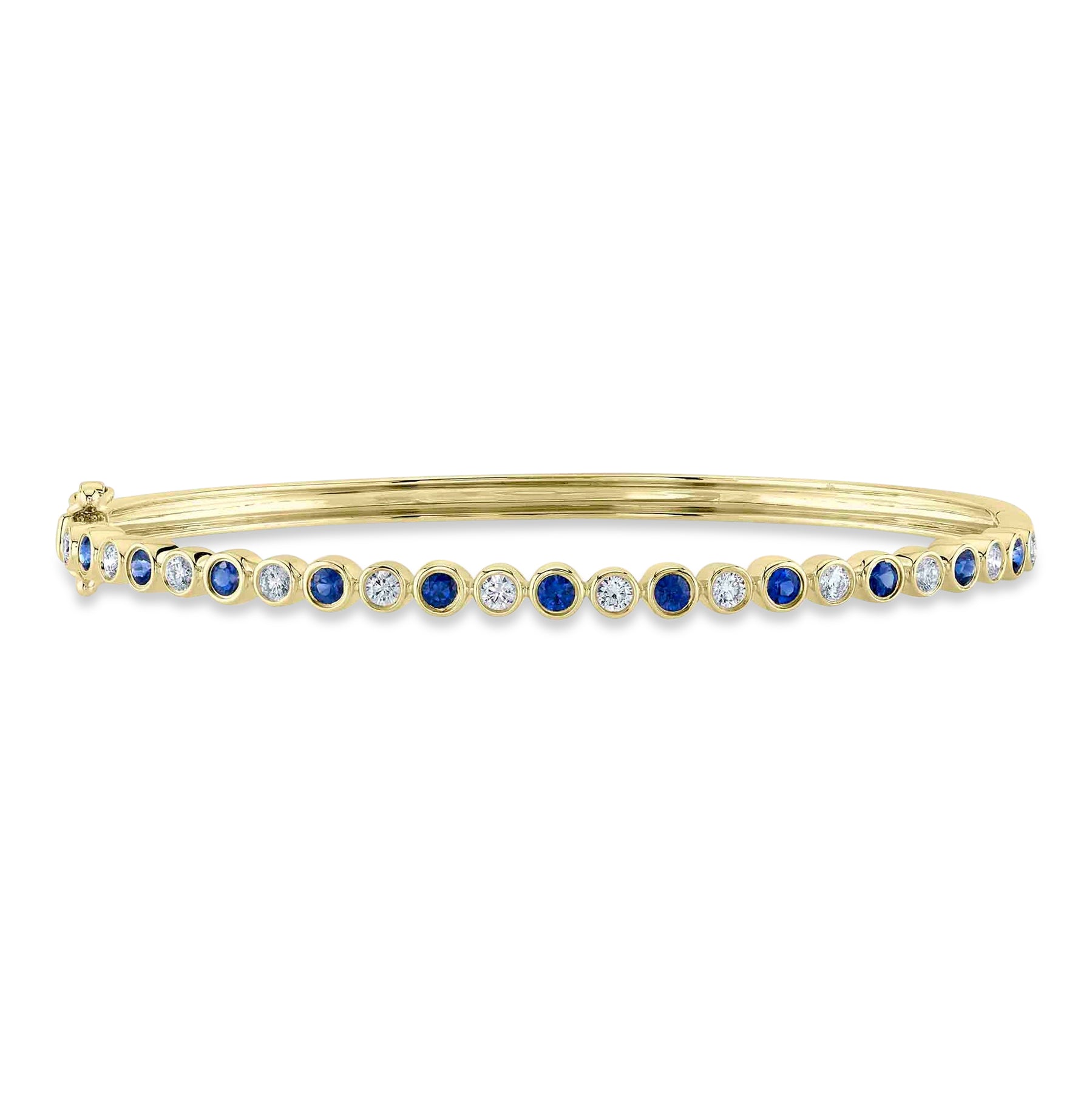 Alternating Diamond & Blue Sapphire Bezel Bangle Bracelet 14K Yellow Gold (1.22ct)