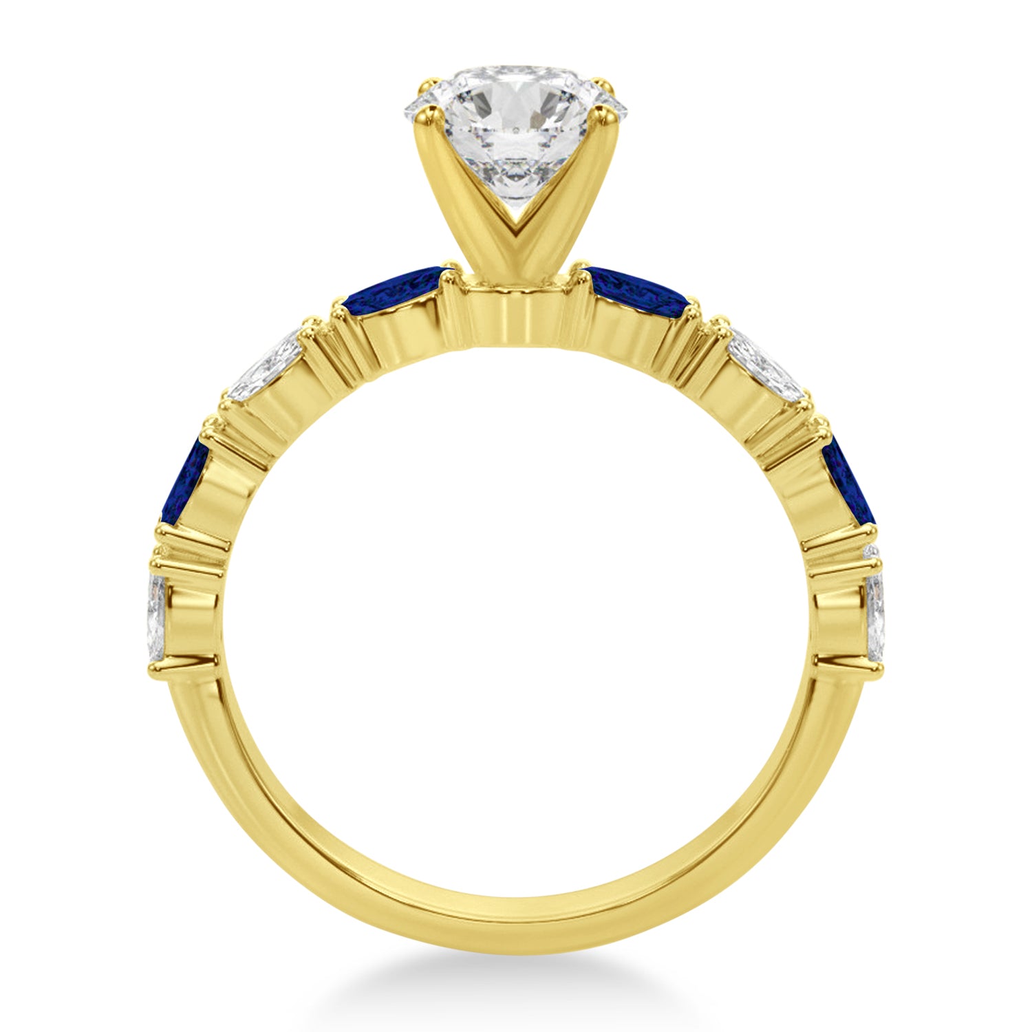 Alternating Diamond & Blue Sapphire Marquise Engagement Ring 14k Yellow Gold (0.63ct)