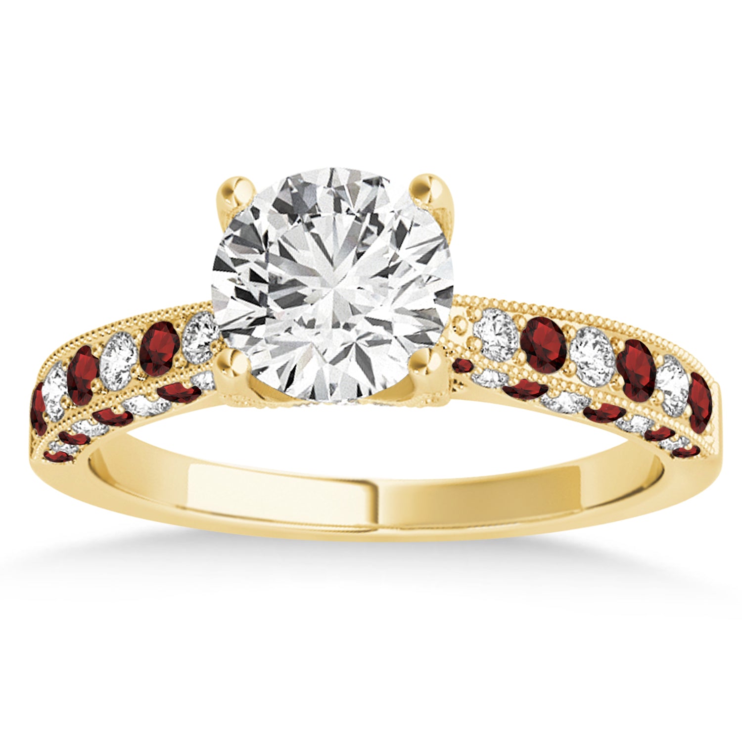 Alternating Diamond & Garnet Engravable Engagement Ring in 18k Yellow Gold (0.45ct)