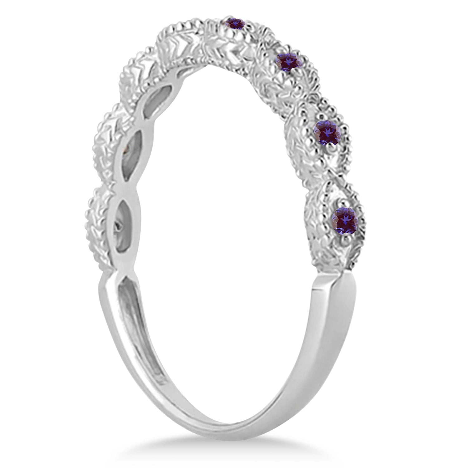 This art deco gemstone wedding ring is crafted in 18kt White Gold with 8 brilliant-cut round lab grown alexandrites set in a pave setting.