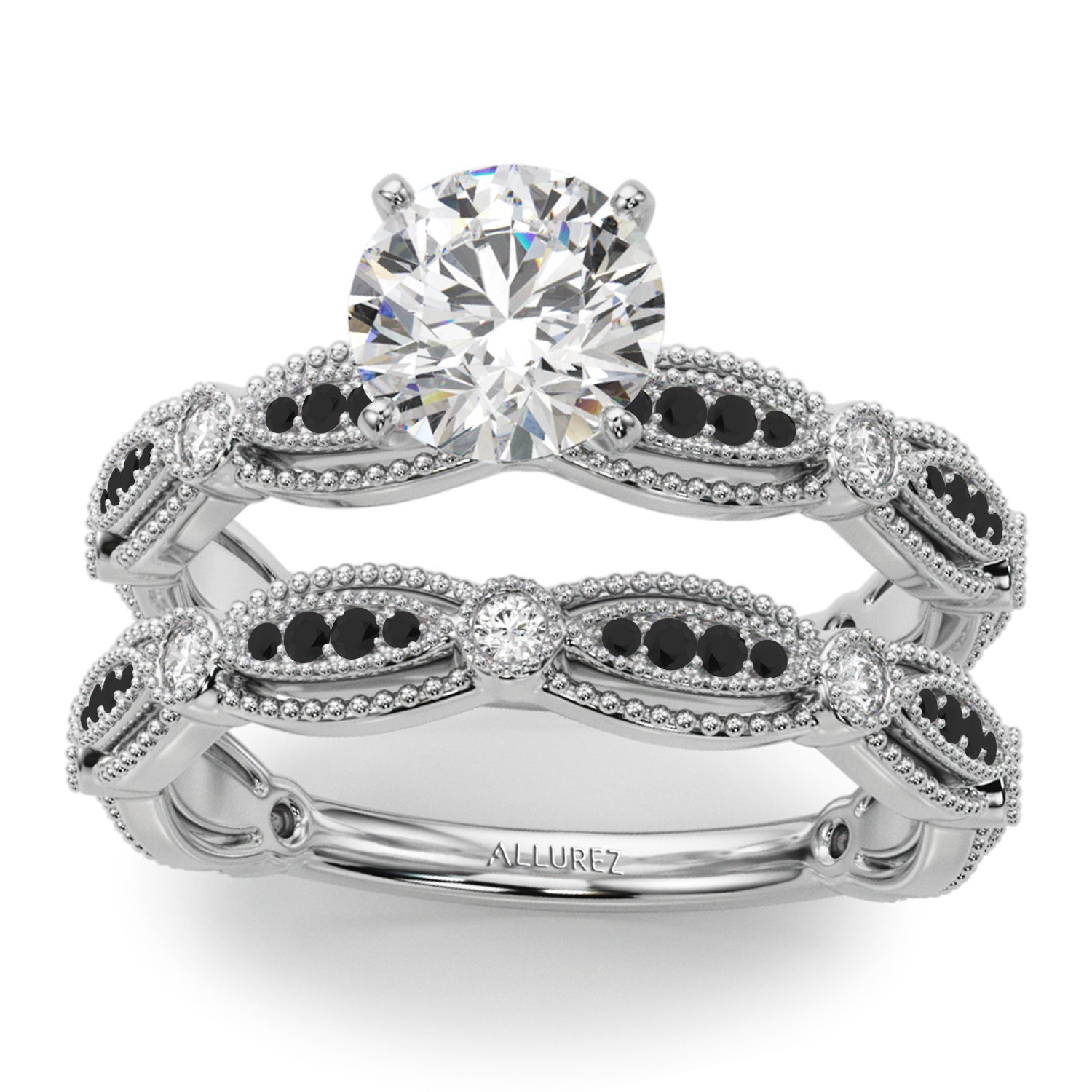 Allurez Antique Style Black Diamond & Diamond Bridal Ring Set in Platinum (0.40ct)