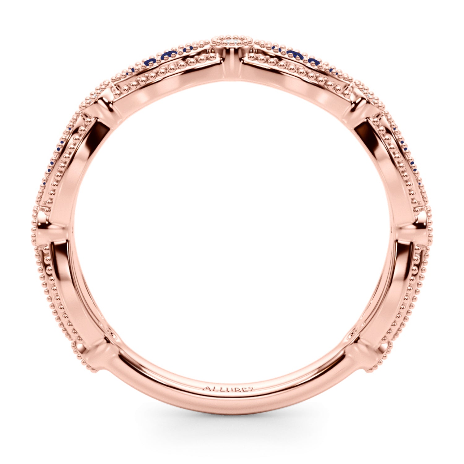 Allurez Stackable Antique Style Blue Sapphire & Diamond Wedding Band in 14K Rose Gold (0.20ct)