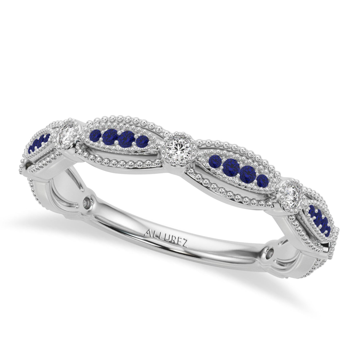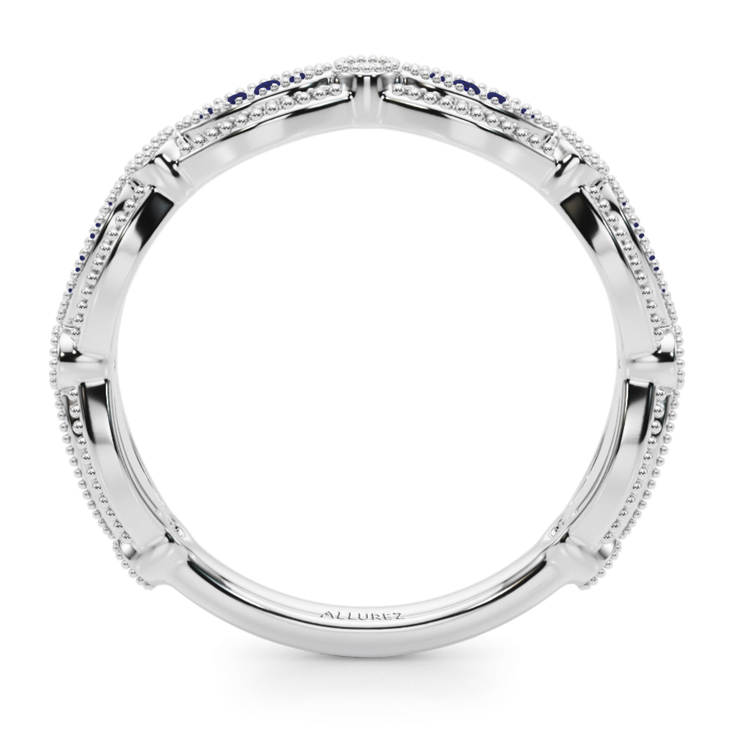 Allurez Stackable Antique Style Blue Sapphire & Diamond Wedding Band in Palladium (0.20ct)