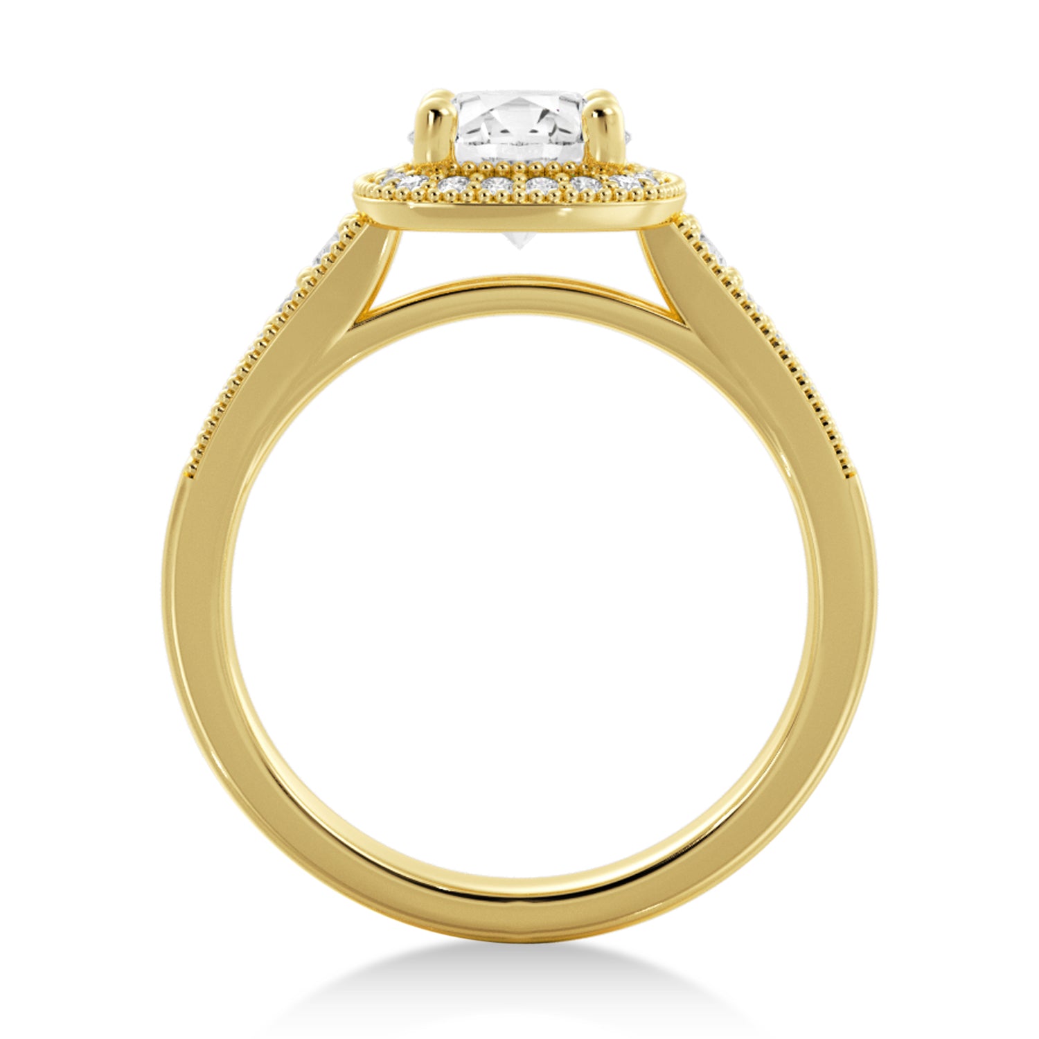 This beautiful vintage style engagement ring is designed with a halo setting to hold a center stone of any carat, cut, clarity and color. Choose the stone that is the best fit for your future fianc?e in this unique ring setting.