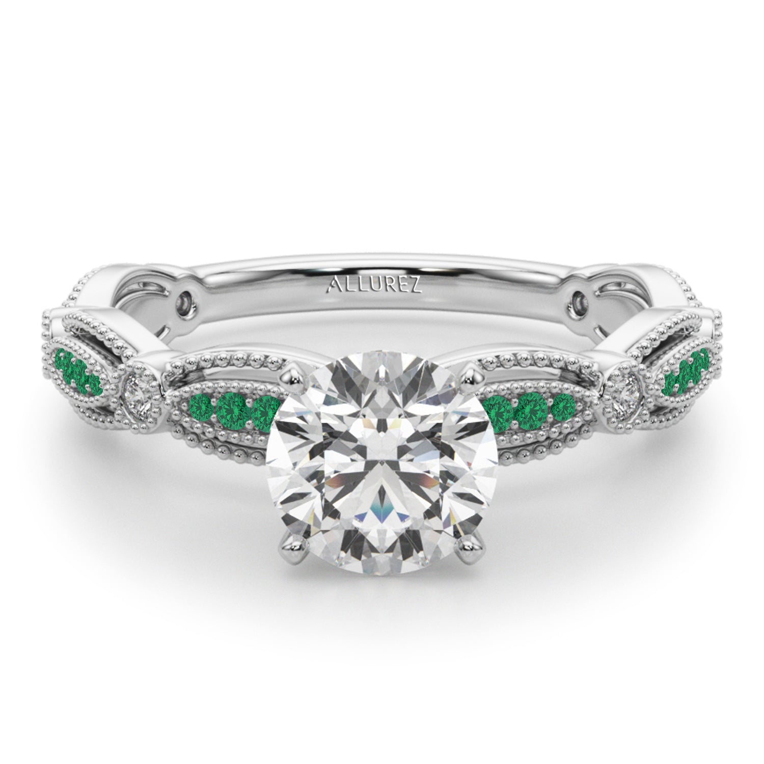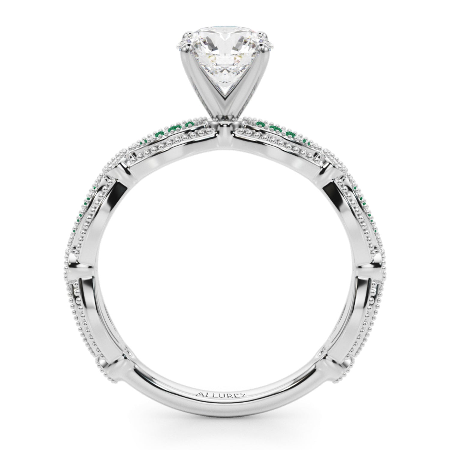 Allurez Antique Style Emerald & Diamond Engagement Ring 18K White Gold (0.20ct)
