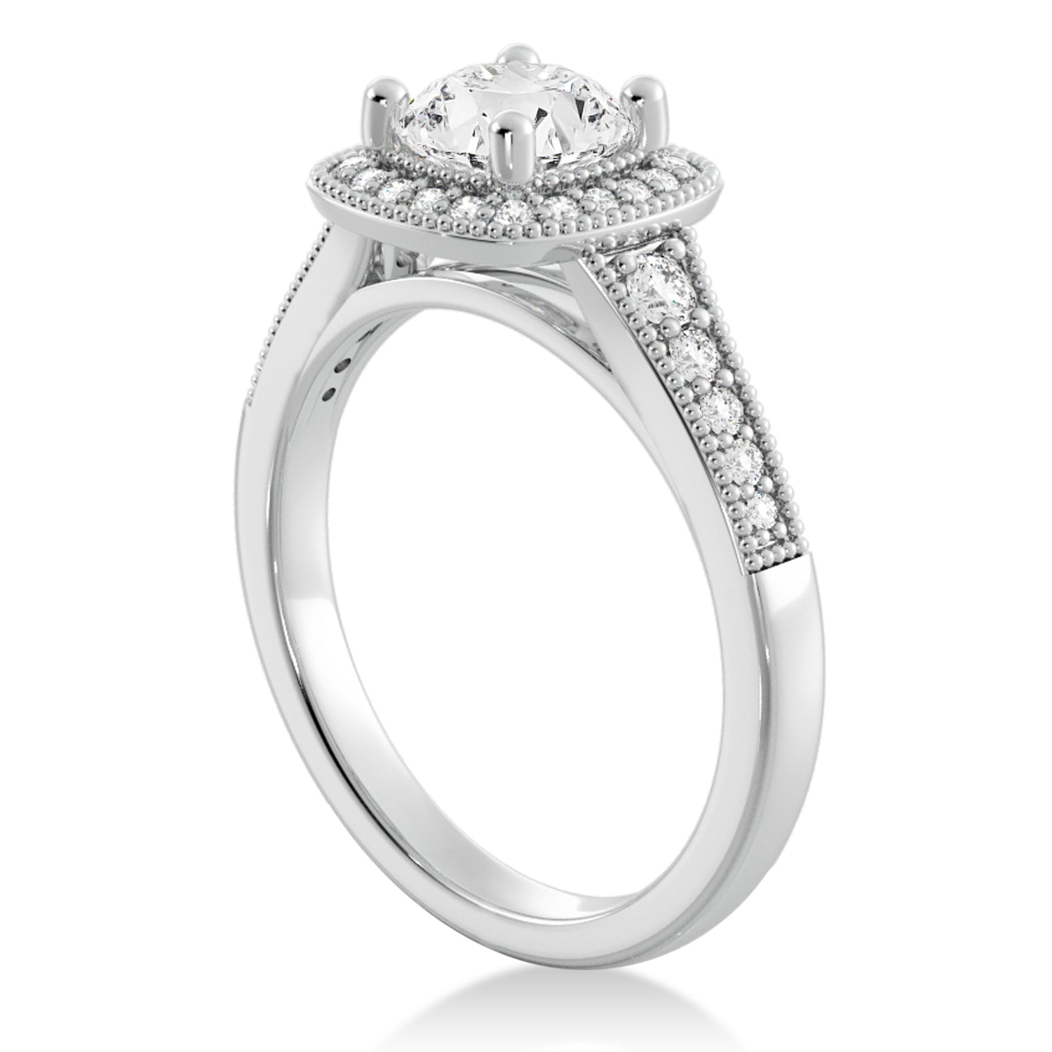 This beautiful vintage style engagement ring is designed with a halo setting to hold a center stone of any carat, cut, clarity and color. Choose the stone that is the best fit for your future fianc?e in this unique ring setting.