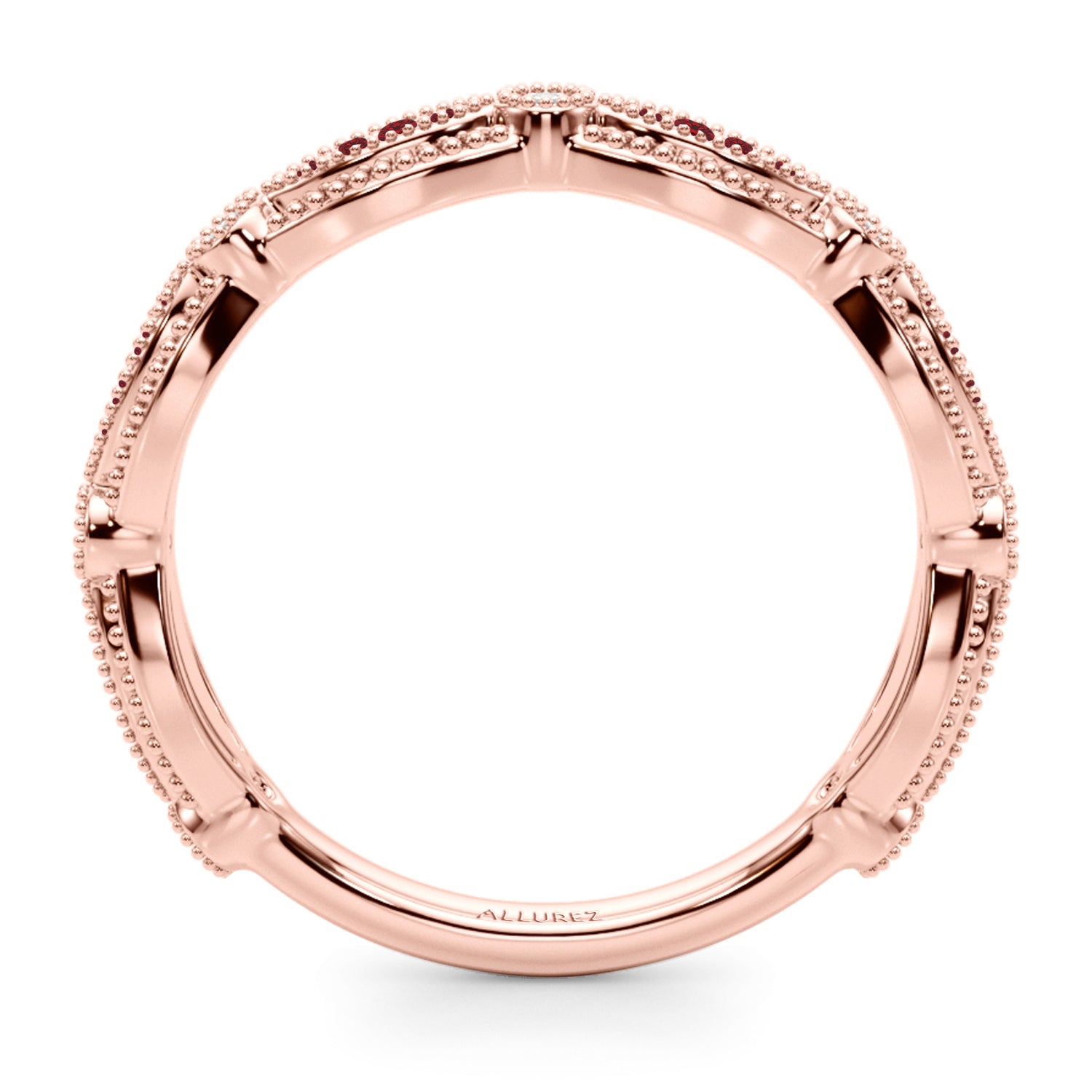 Allurez Stackable Antique Style Ruby & Diamond Wedding Band 14K Rose Gold (0.20ct)