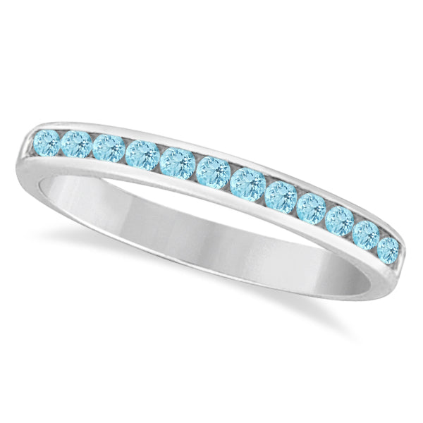 Aquamarine Channel-Set Semi-Eternity Ring Band 14k White Gold (0.40ct)