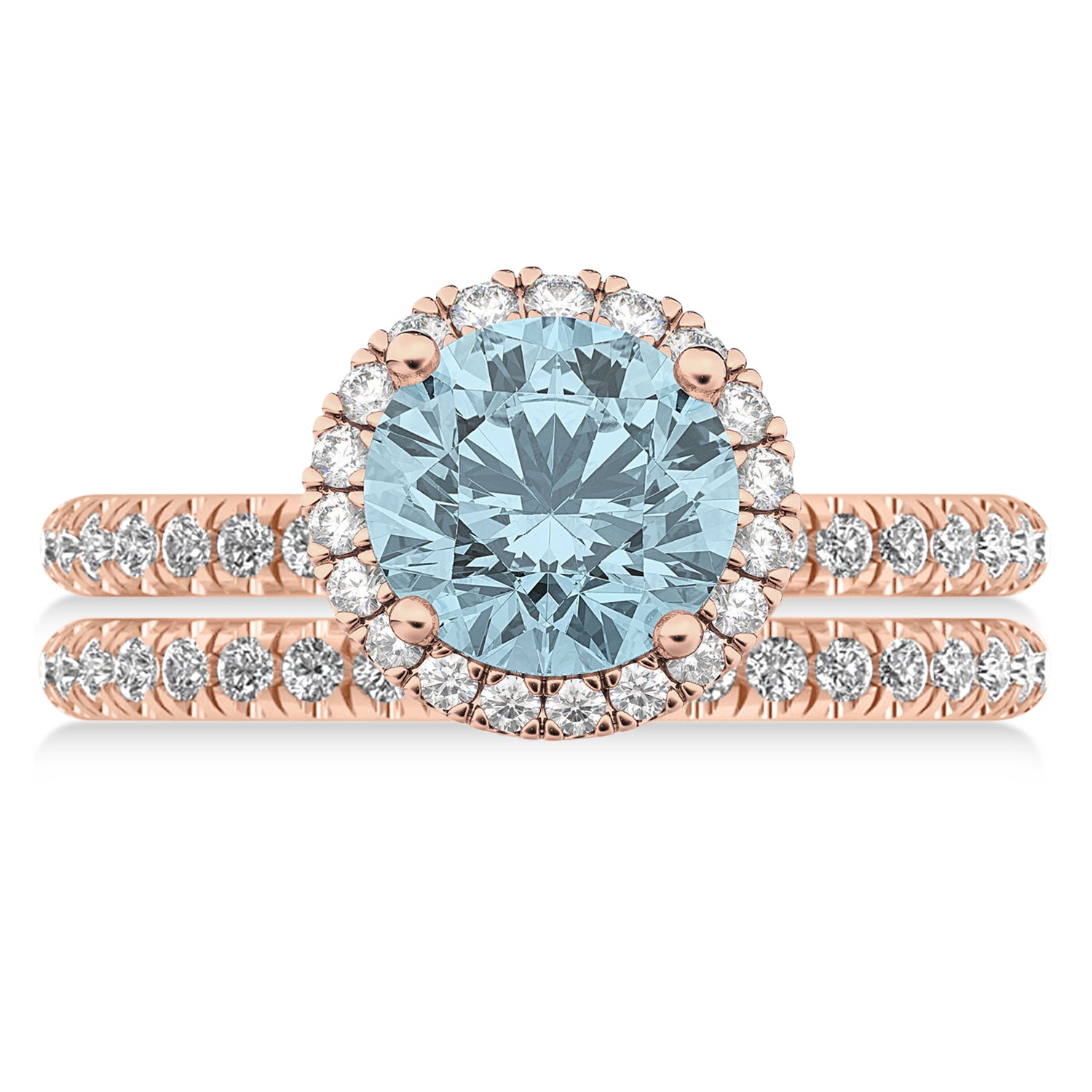 Aquamarine & Diamond Round-Cut Halo Bridal Set 14K Rose Gold (2.97ct)