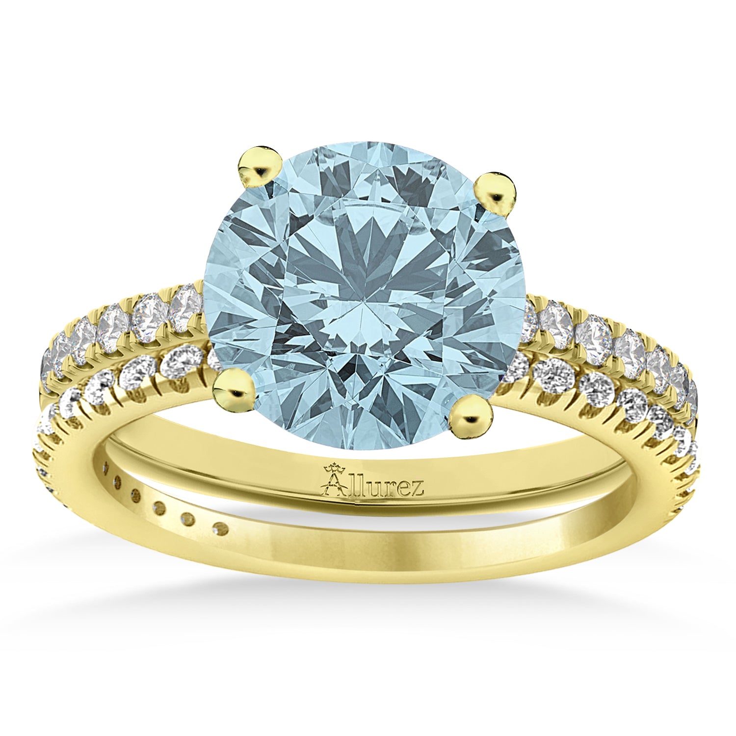 Aquamarine & Diamond Round-Set Semi-Eternity Bridal Set 14k Yellow Gold (2.82ct)
