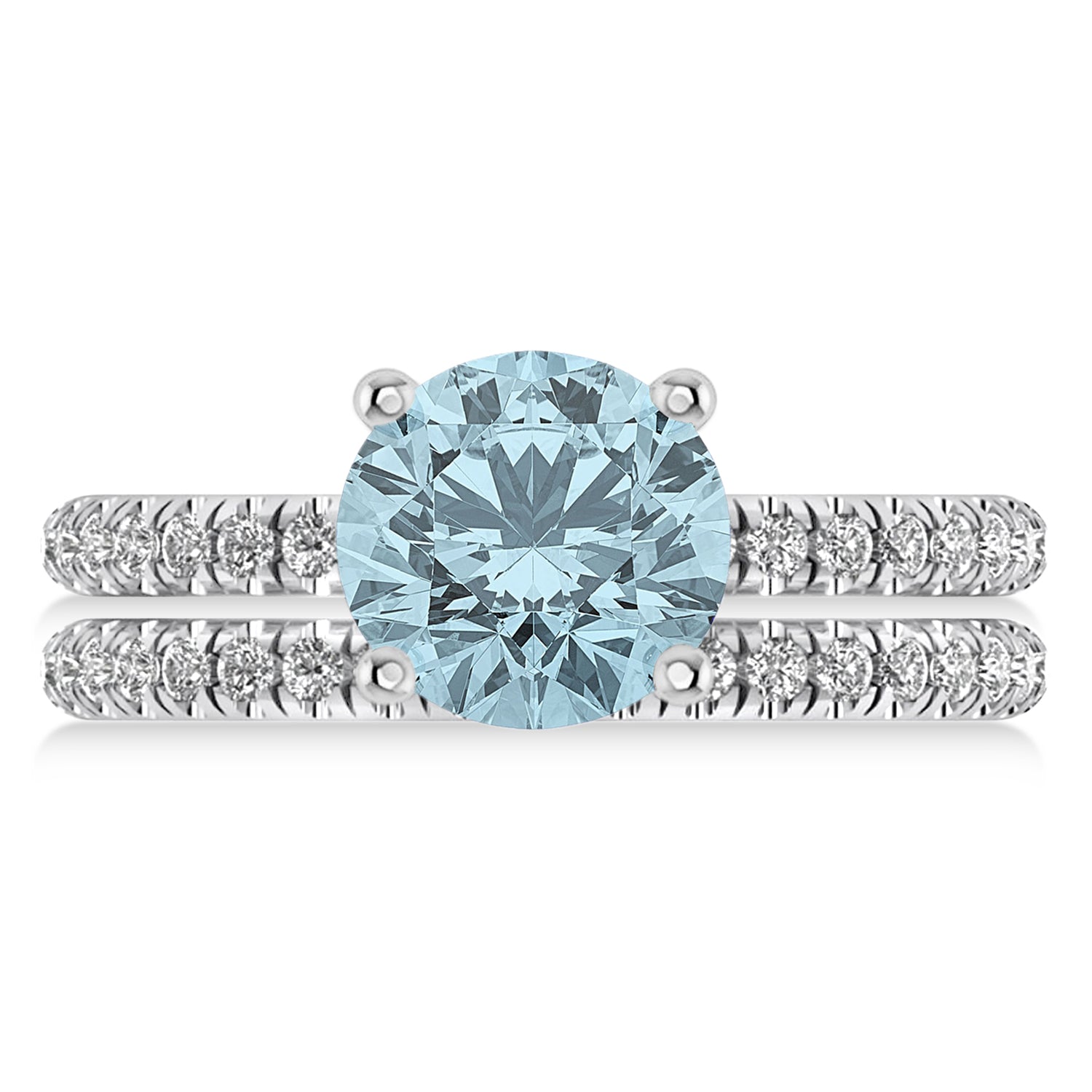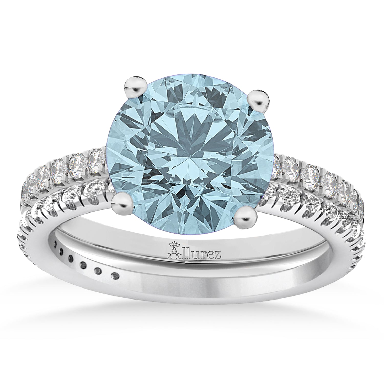 Aquamarine & Diamond Round-Set Semi-Eternity Bridal Set Palladium (2.8