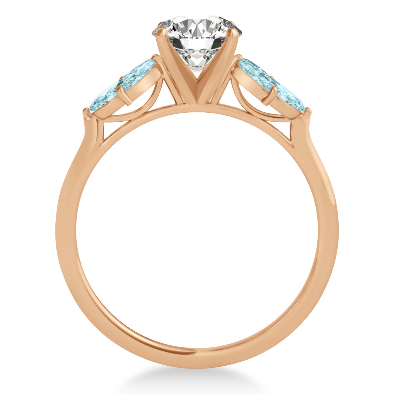 Aquamarine Marquise Floral Engagement Ring 14k Rose Gold (0.50ct)