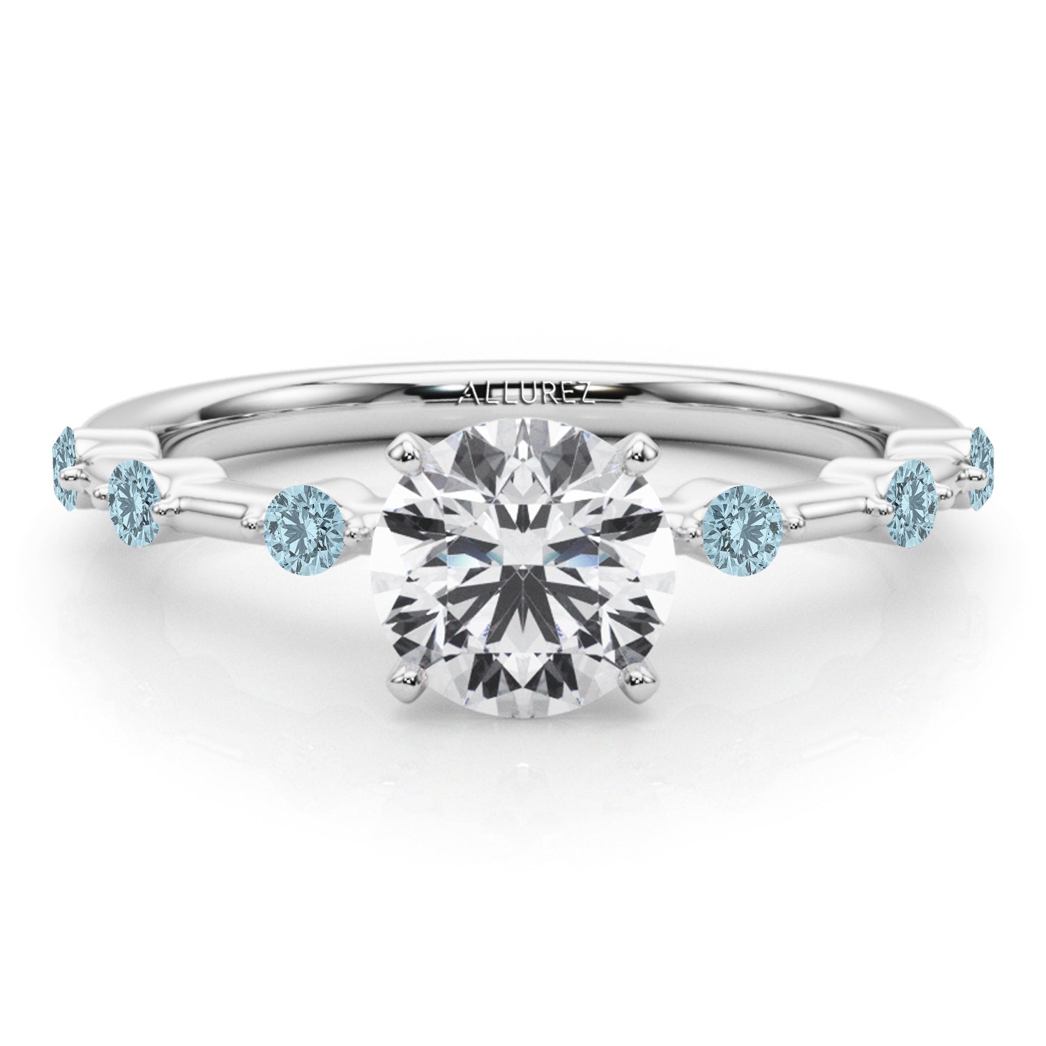 Indulge in timeless sophistication with our Aquamarine Scalloped Engagement Ring in opulent 14K White Gold, featuring a stunning 0.20ct. Meticulously crafted to the highest standards, this engagement ring showcases diamond of your choice and mesmerizing scalloped Aquamarines, ensuring exceptional quality and brilliance. With a myriad of customization options available, you have the freedom to tailor this ring to match your individual preferences and style. Whether for engagements, weddings, or as a remarkable gift, it radiates timeless beauty and charm.