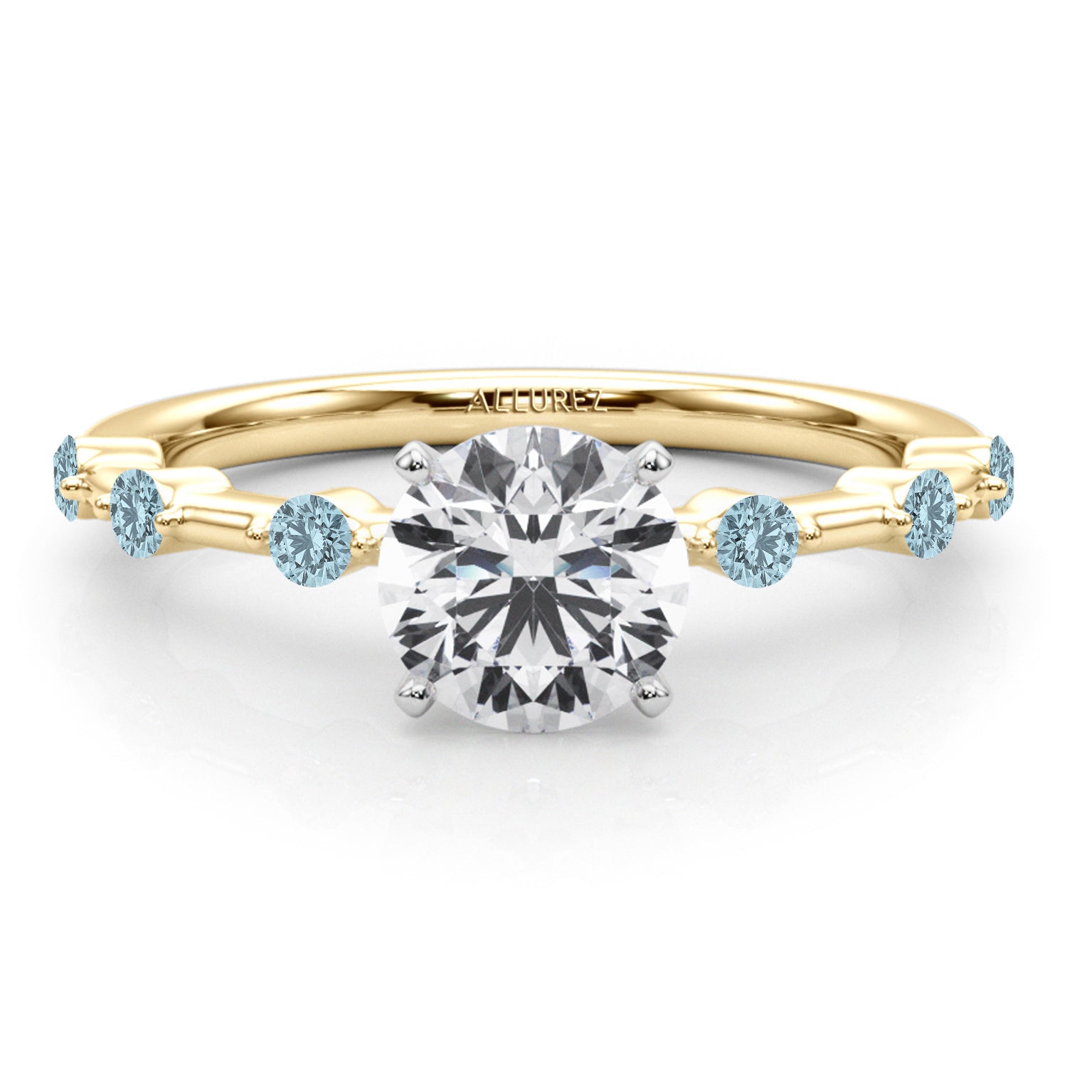 Indulge in timeless sophistication with our Aquamarine Scalloped Engagement Ring in opulent 18K Yellow Gold, featuring a stunning 0.20ct. Meticulously crafted to the highest standards, this engagement ring showcases diamond of your choice and mesmerizing scalloped Aquamarines, ensuring exceptional quality and brilliance. With a myriad of customization options available, you have the freedom to tailor this ring to match your individual preferences and style. Whether for engagements, weddings, or as a remarkable gift, it radiates timeless beauty and charm.