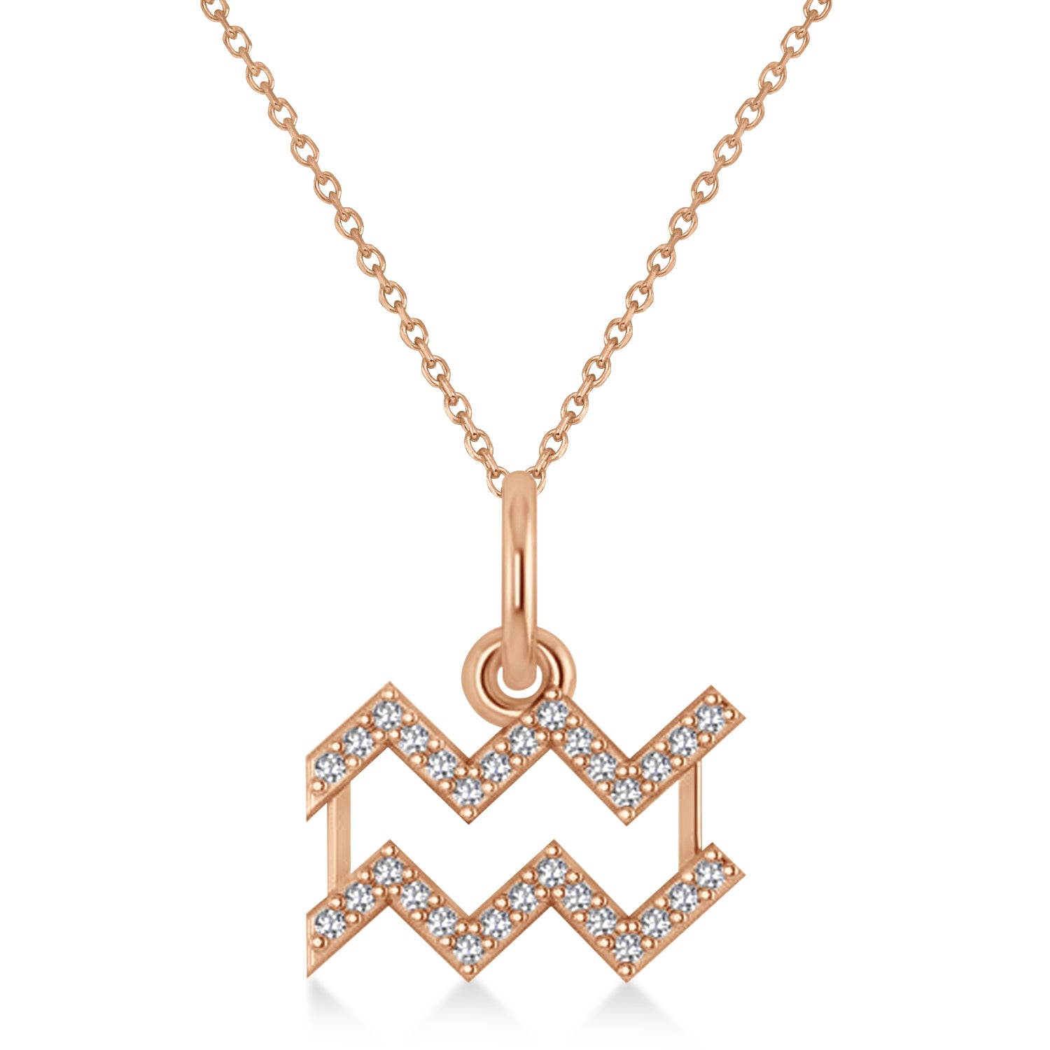 Aquarius Zodiac Diamond Pendant Necklace 14k Rose Gold (0.15ct)