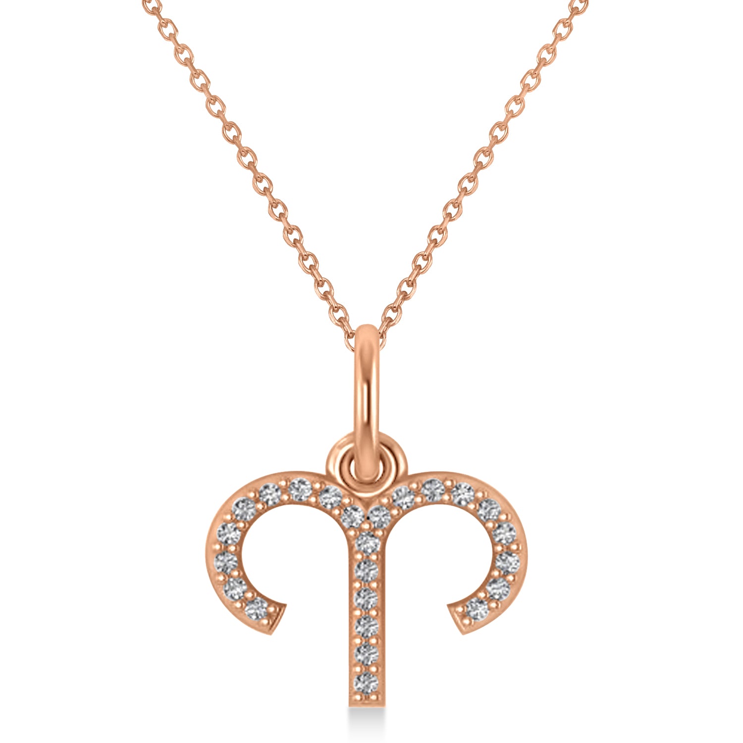 Aries Zodiac Diamond Pendant Necklace 14k Rose Gold (0.12ct)