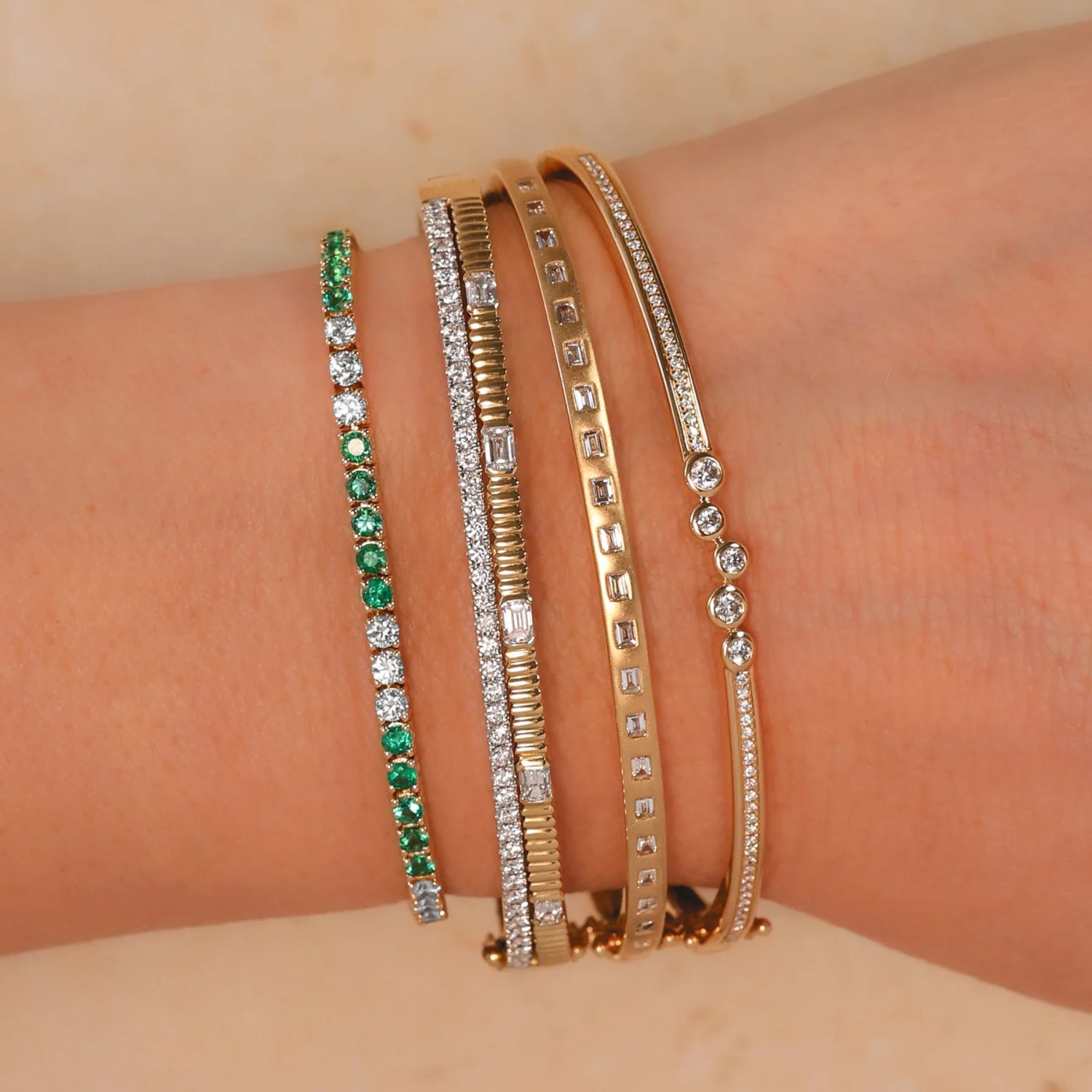 Elevate your elegance with our Baguette Diamond Matte Bangle Bracelet in 14K Yellow Gold