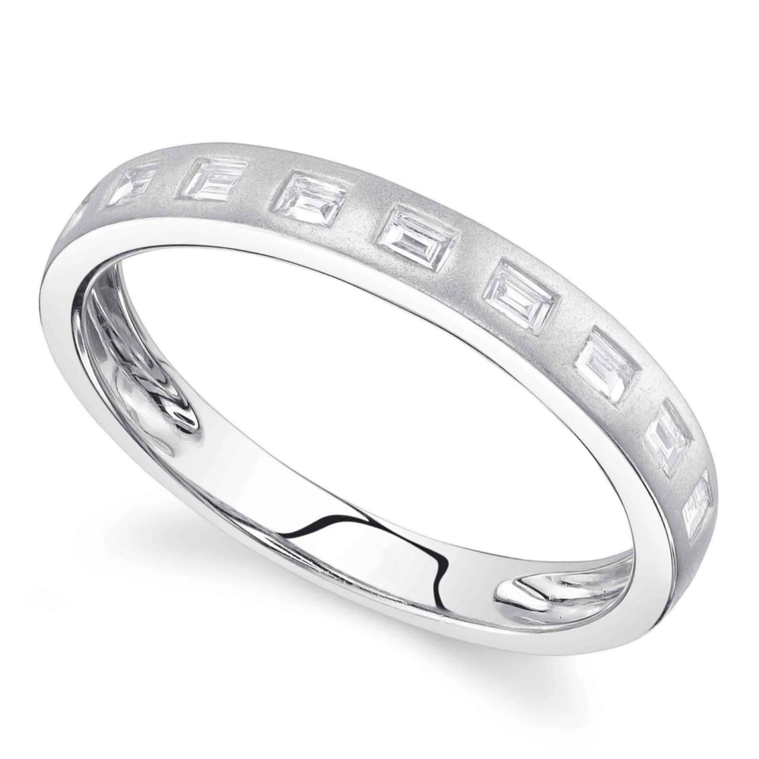 Discover timeless elegance with our Baguette Diamond Matte Wedding Ring Band in 14K White Gold