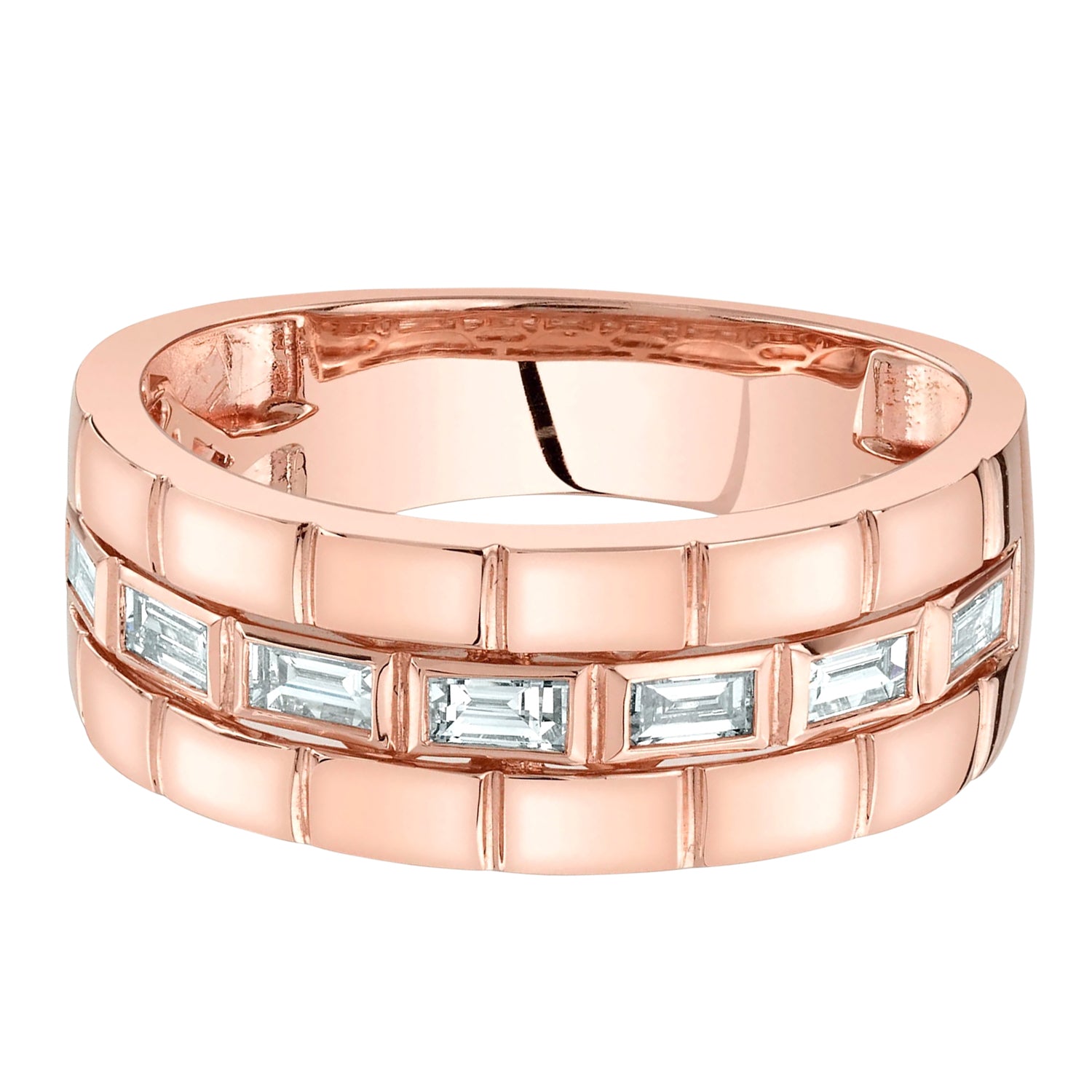 This sophisticated ring features 0.50 carats of dazzling baguette-cut diamonds, meticulously set in a sleek 14K rose gold band. The elegant design and high-quality craftsmanship make this ring a timeless symbol of love and commitment.