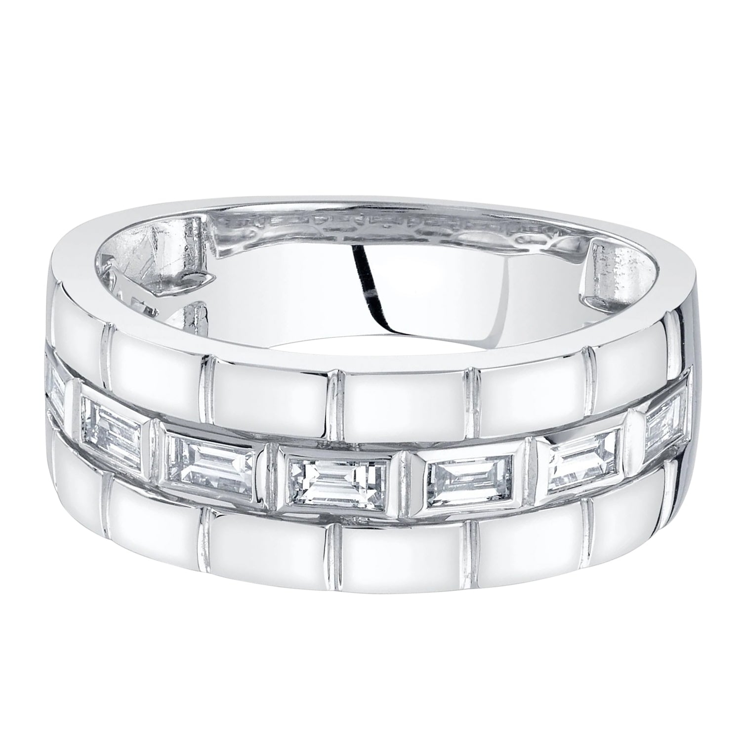 This elegant ring features 0.50 carats of lab-grown baguette diamonds, expertly set in a sleek 14K white gold band. Combining sustainability with sophistication, this ring is perfect for the modern groom who values both style and environmental responsibility.