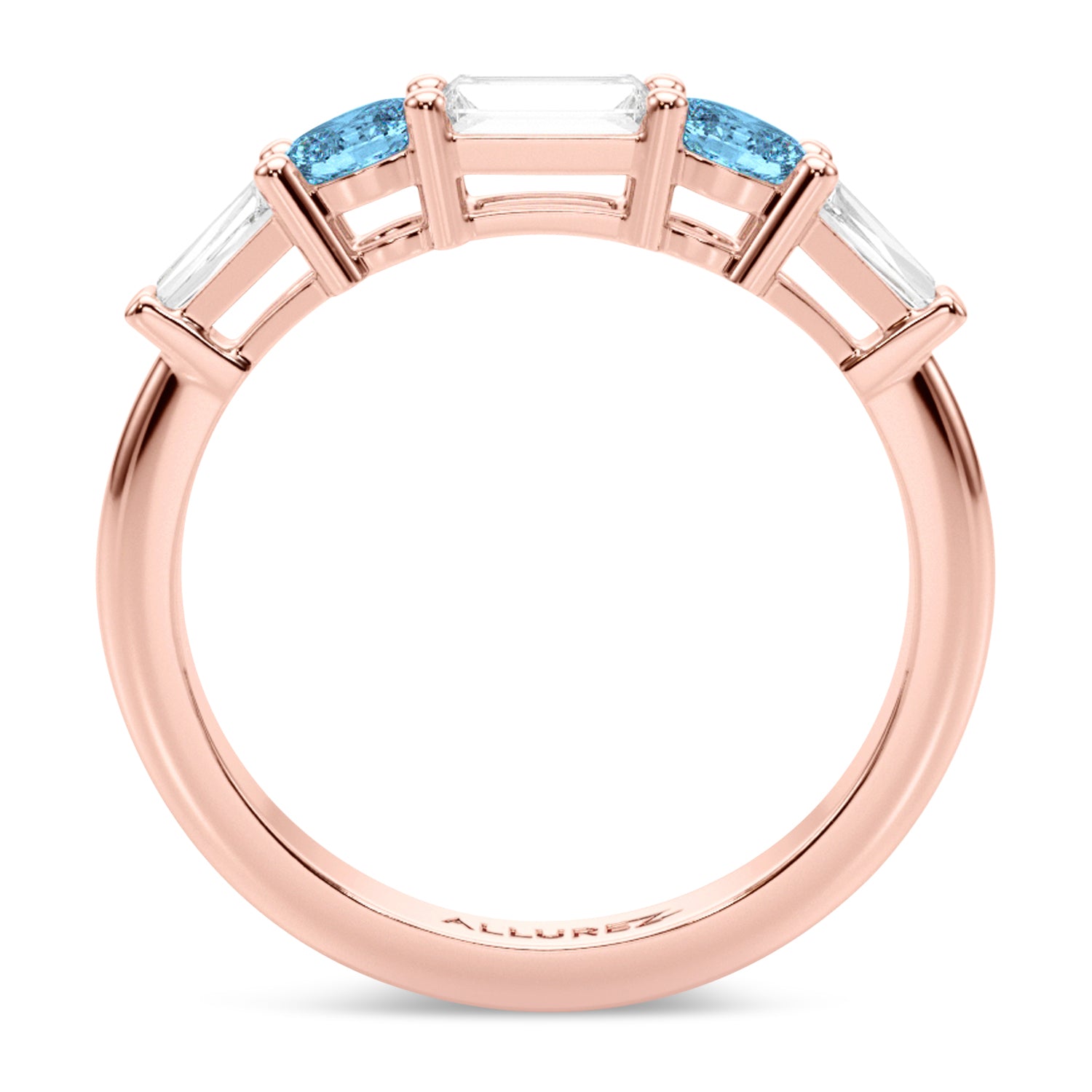 Baguette Lab Diamond & Oval Blue Topaz Wedding Ring Band 14K Rose Gold (0.79ct)