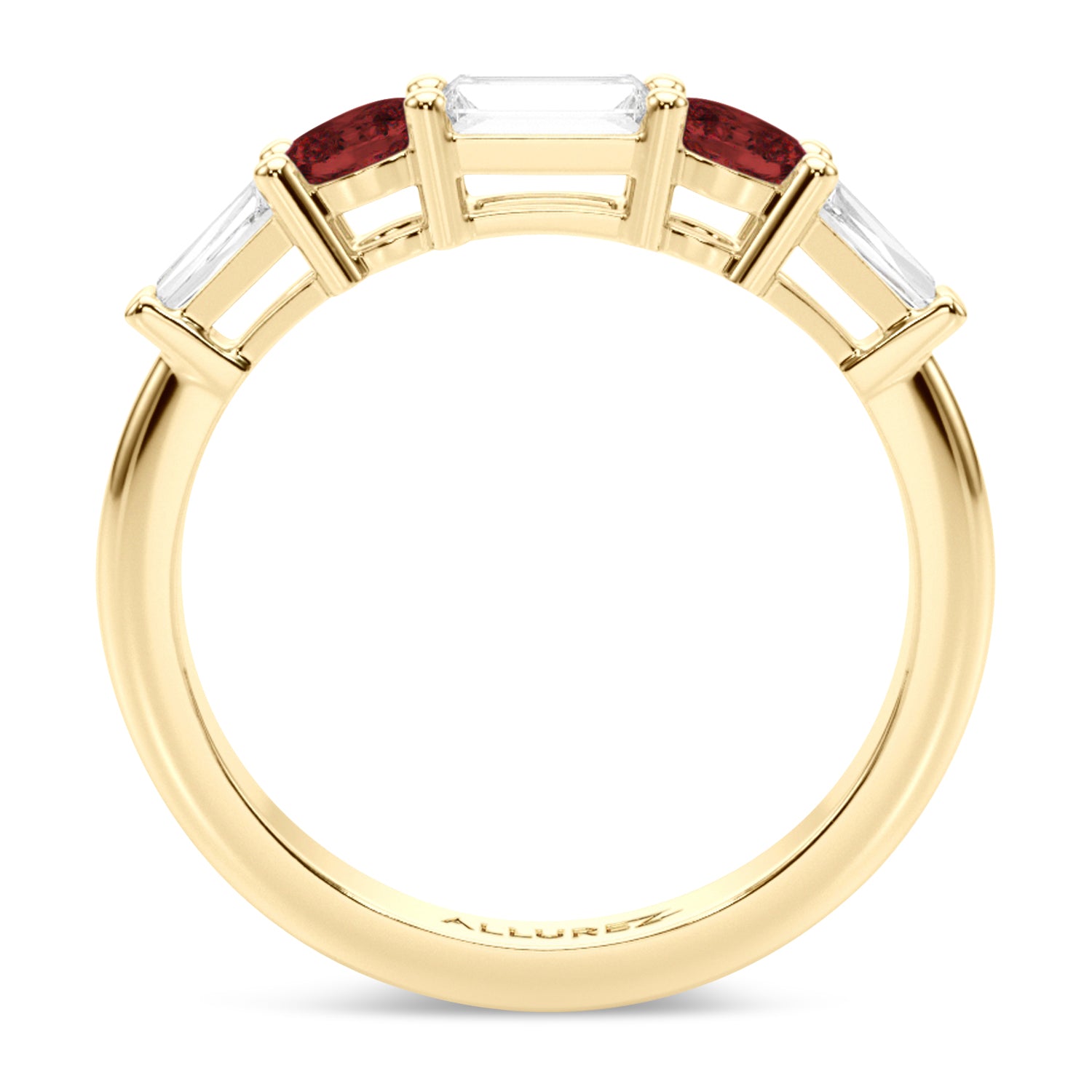 Baguette Lab Grown Diamond & Oval Garnet Wedding Ring Band 14K Yellow Gold (0.79ct)