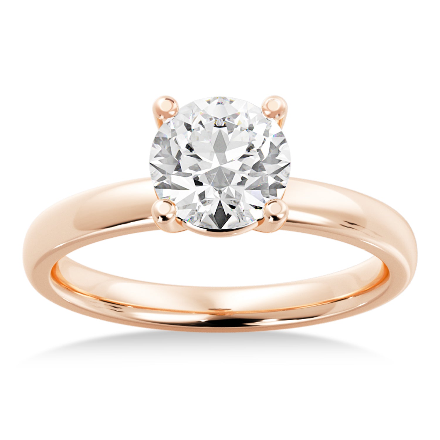 This beautiful solitaire engagement ring setting features a classy 4 prong basket head. Choose the stone that is the best fit for your future fianc?e in this unique ring setting. All diamonds are placed in a long-lasting 14k rose gold prong setting.