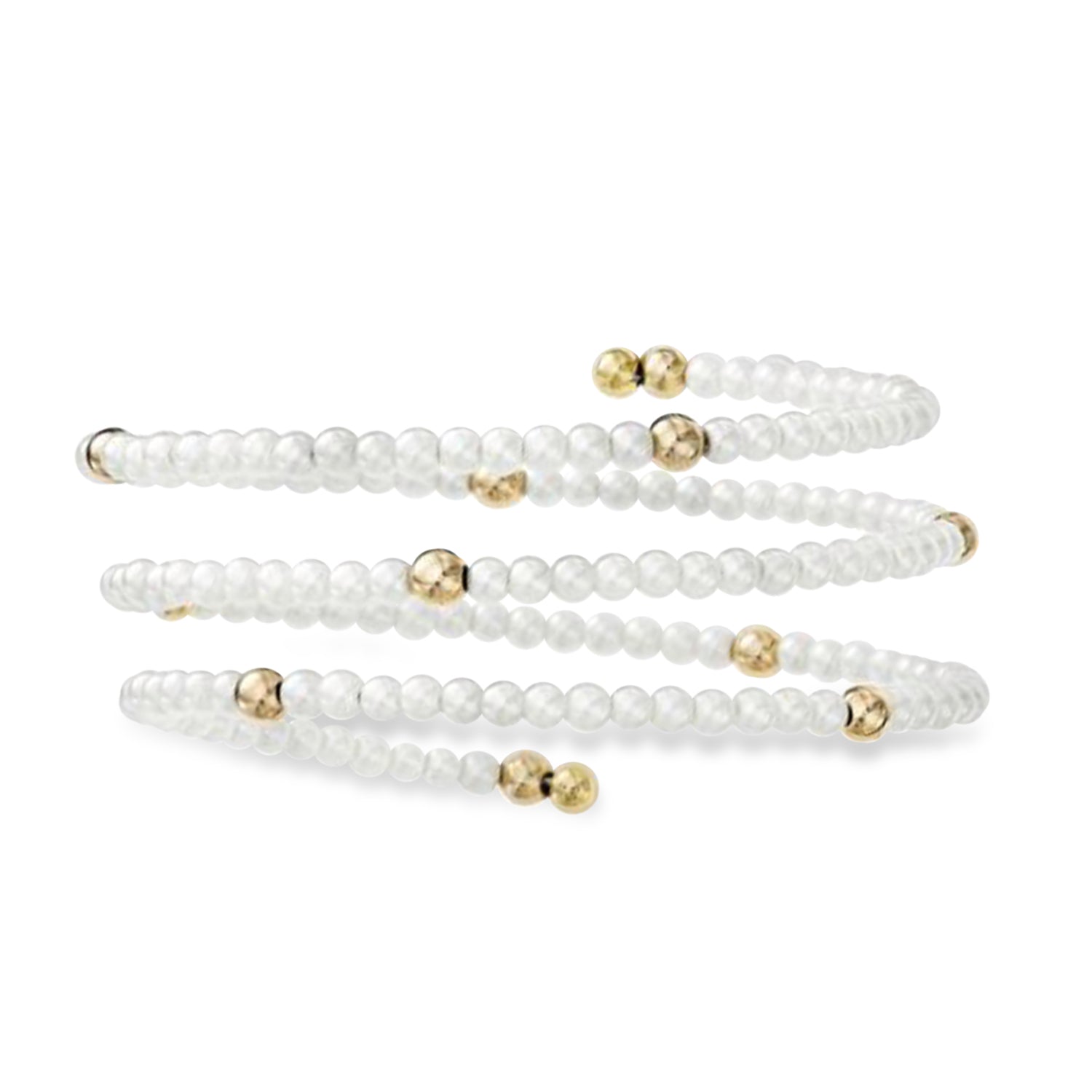 Introducing our exquisite Bead Coil Polished Pearl Bangle, a true embodiment of elegance and sophistication. Crafted with meticulous attention to detail, this bangle features a delicate coil design made from lustrous 14K gold, exuding a radiant glow. Adorning the bangle are beautifully polished pearls, adding a touch of timeless grace and femininity. The combination of the gold coil and the pearls creates a stunning contrast that captures the essence of refined beauty. Whether worn alone or stacked with other bracelets, this Bead Coil Polished Pearl Bangle is a versatile accessory that effortlessly elevates any ensemble, from casual to formal occasions. Embrace the allure of this bangle and embrace a touch of classic luxury in your style.