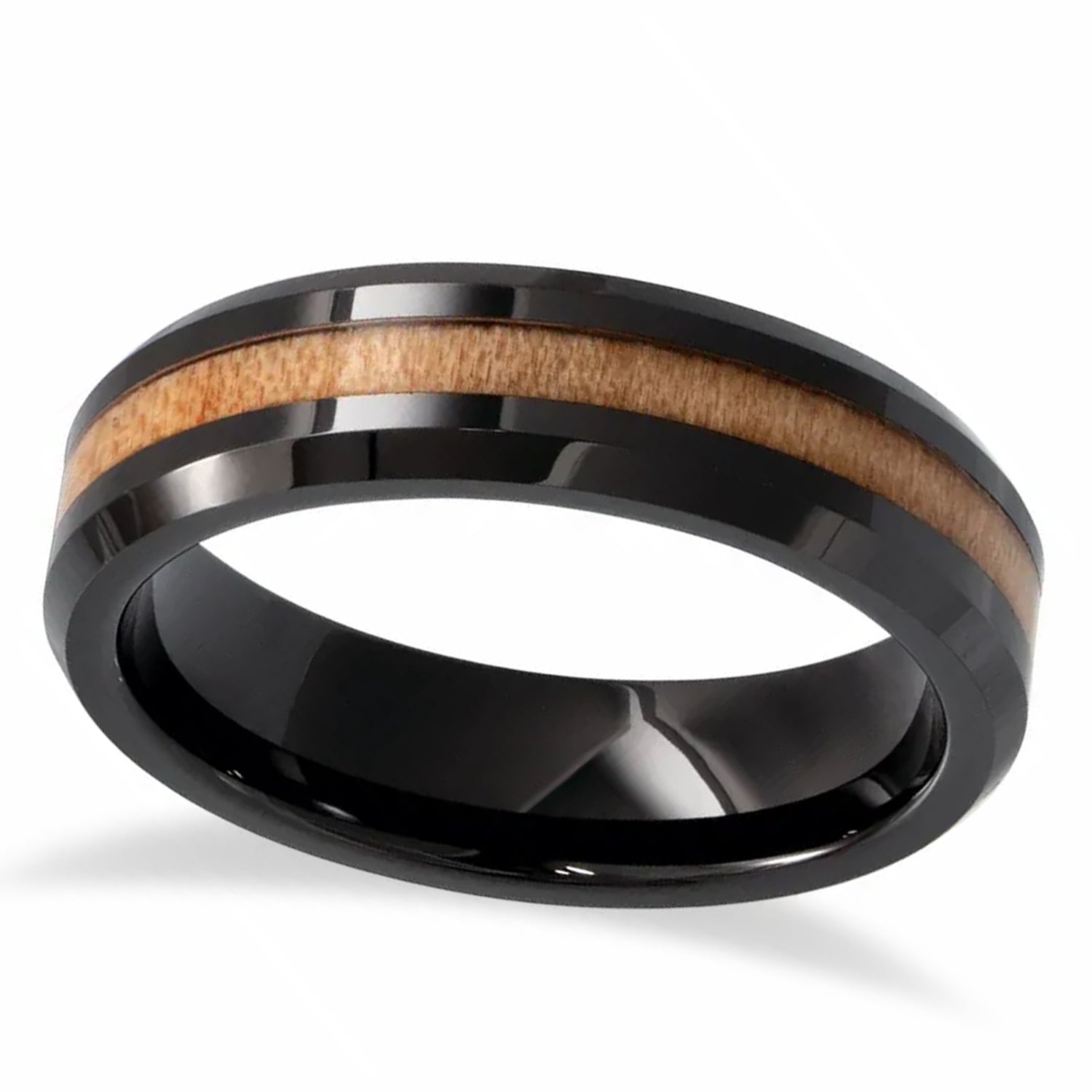 Black Ceramic Beveled Edge with Cypress Wood Inlay Wedding Band (8mm)