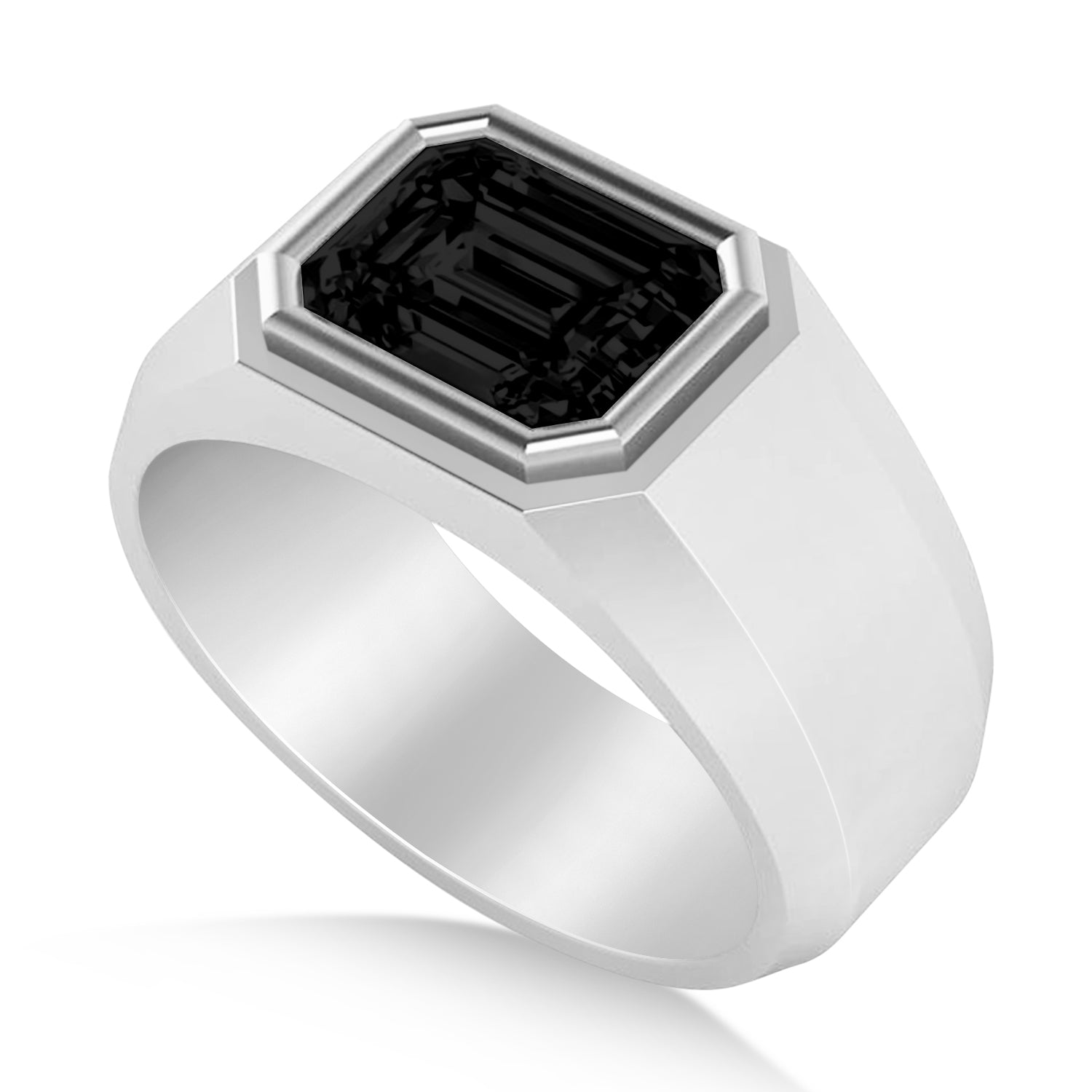 This solitaire black diamond engagement ring for men features a stunning 2.50ct emerald-cut black diamond...