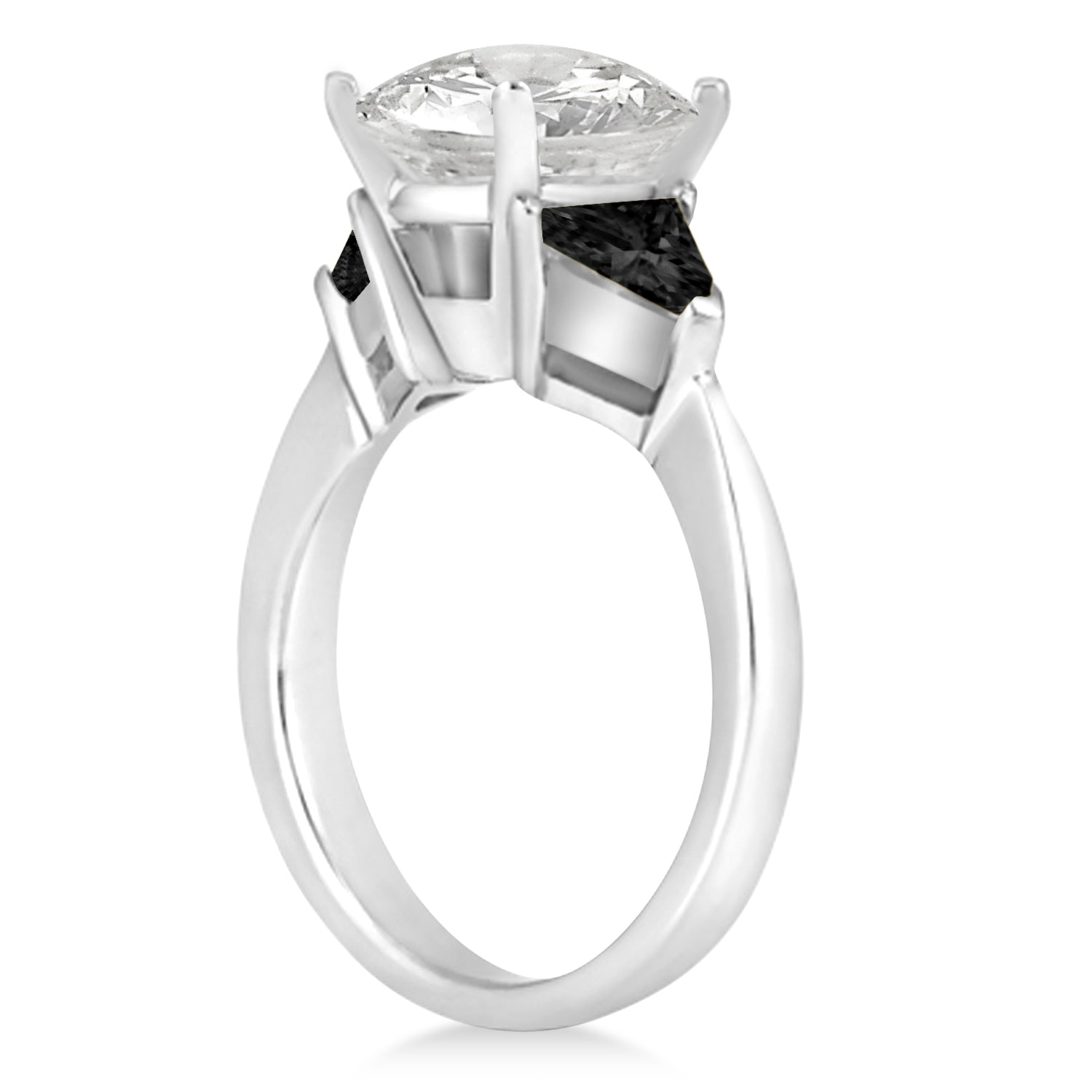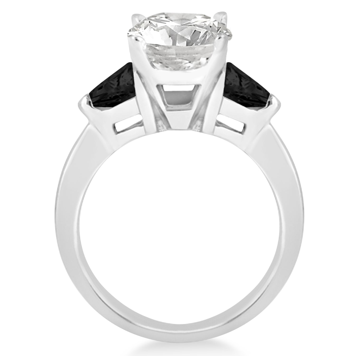 This engagement ring features two magnificent trillion cut black diamond stones, prong set, eye-clean, weighing a total of 0.70 carats. Personalize your trillion-engagement ring by choosing the cut and shape of your center stone.