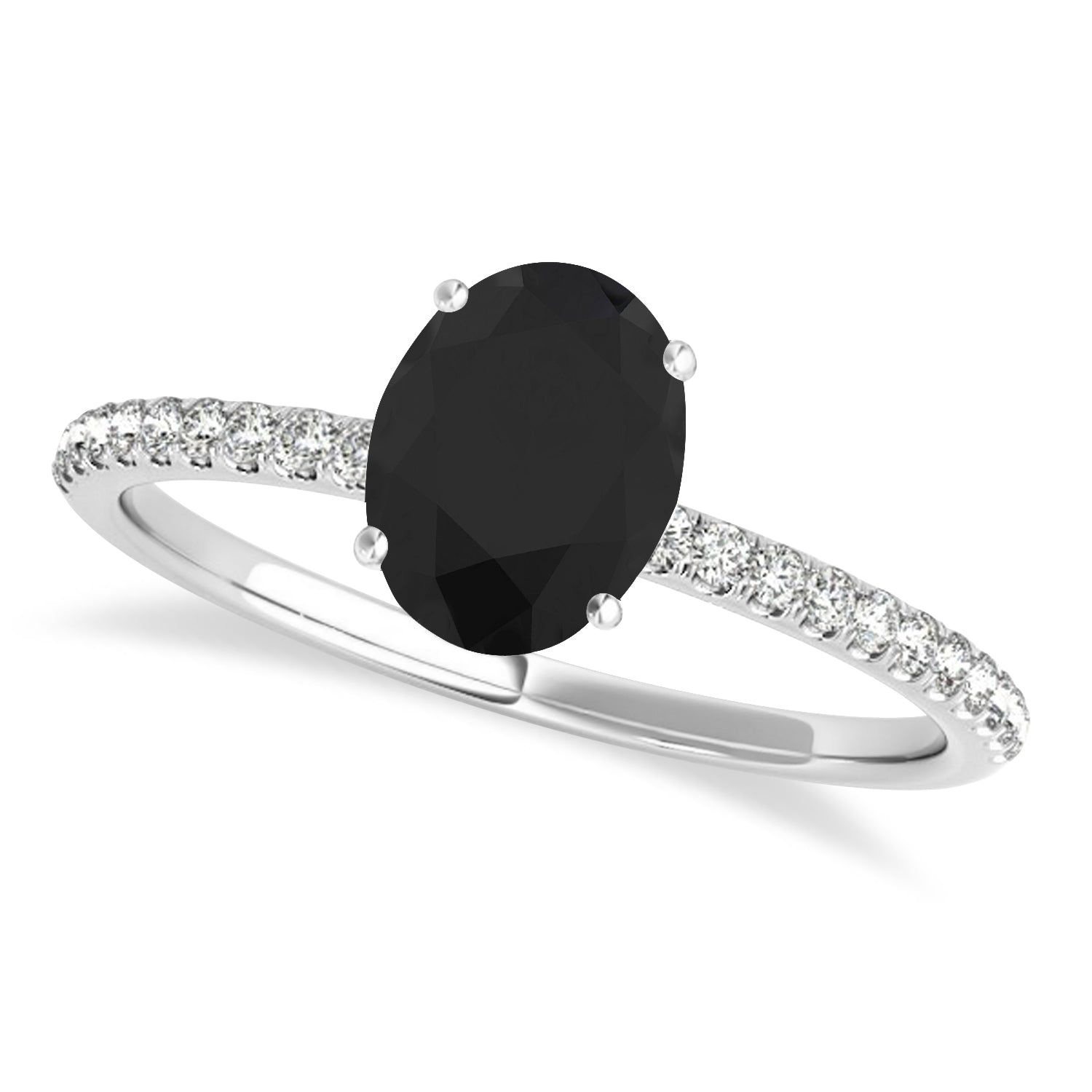 Black & White Diamond Accented Oval Shape Engagement Ring 14k White Go