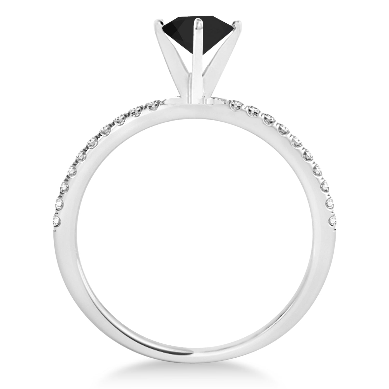 Romance personified with grace. This 14k white gold Allurez semi-eternity band boasts a thrilling 2.38 carat oval shape center black diamond while the 20 extravagant pave-set round diamonds accenting the sides are of SI1-SI2 clarity and G-H color with an approximate carat weight of 0.12.
