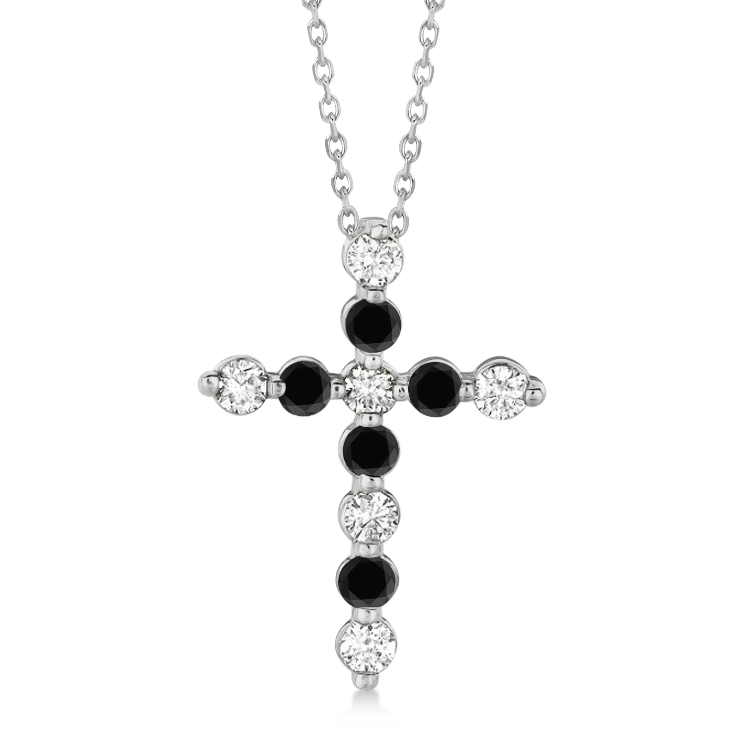 Black & White Diamond Cross Pendant Necklace in 14k White Gold (1.01ct)